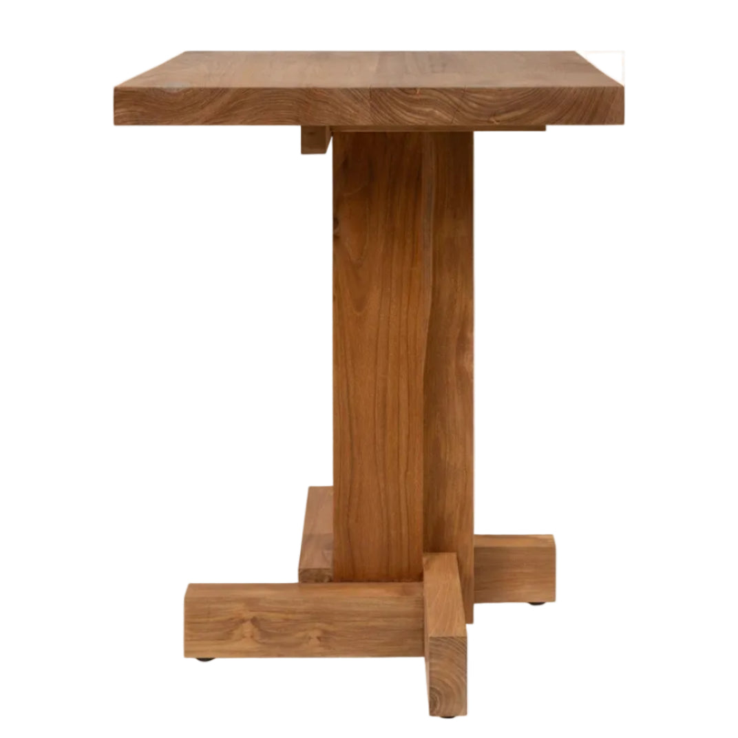 Designen rör sig mellan skulptural möbelform och funktionellt matbord. Raka linjer, definierade ytor och genomtänkta proportioner ger ett uttryck som känns både samtida och tidlöst. Här möts en modernistisk känsla för balans med brutalismens fokus på ärliga material och robust struktur, vilket gör bordet till ett självklart val för inredningar där trä, form och materialitet står i centrum.