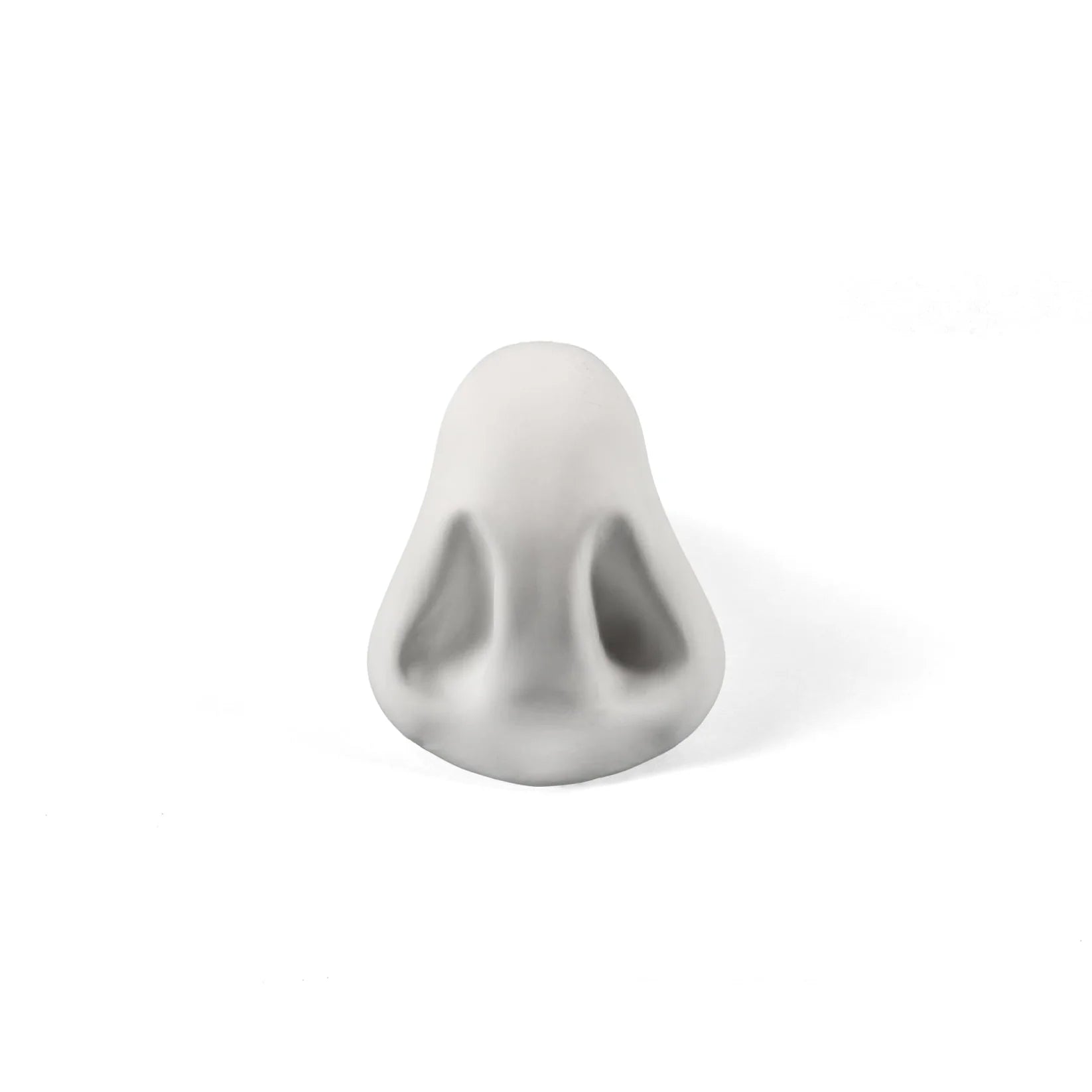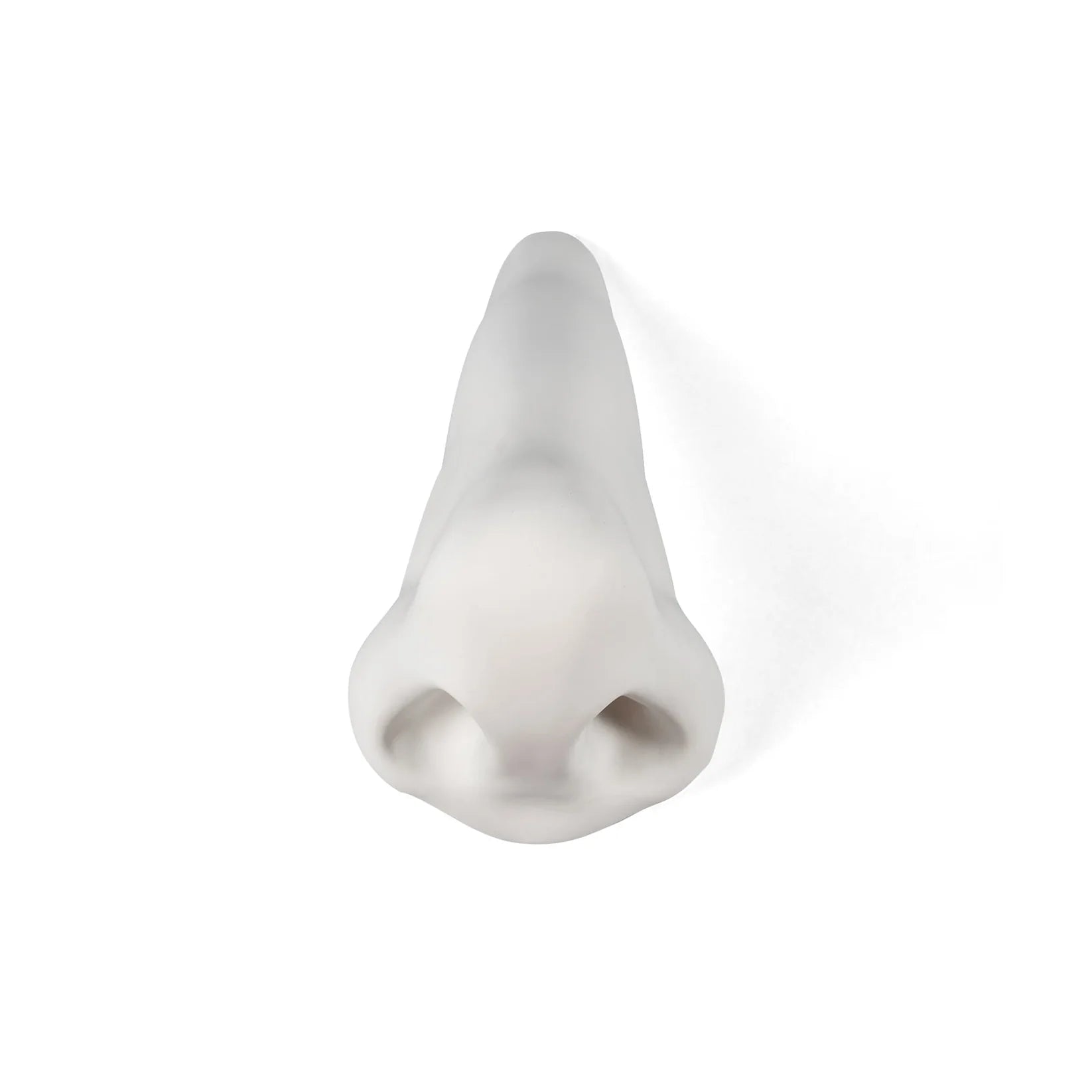 Det rent vita porslinet skapar en skulptural närvaro och ger objektet både elegans och förfining. Samtidigt blir motivet – näsan – en slags tankeväckande symbol: en del av det mänskliga, avlägset isolerat, upphöjt till dekor och reflektion.