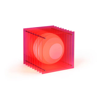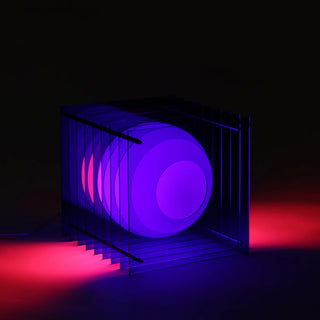 Kollektionen LOP är ett tydligt exempel på BANGs hyllning till materialet: lager av akryl/stål omsluter en svävande sfär som speglas i flera riktningar och skapar en illusion av rörelse – trots att allt egentligen är stilla.