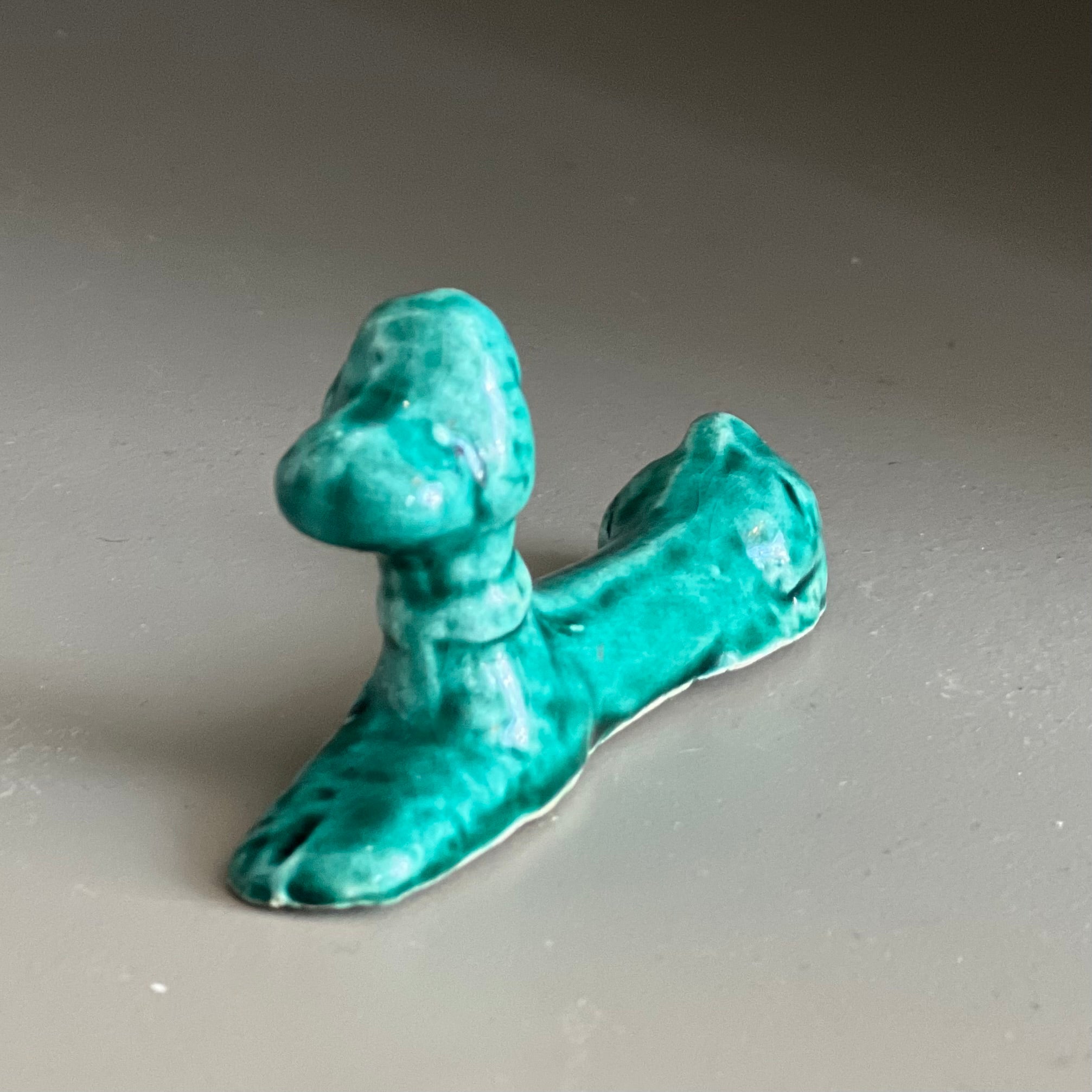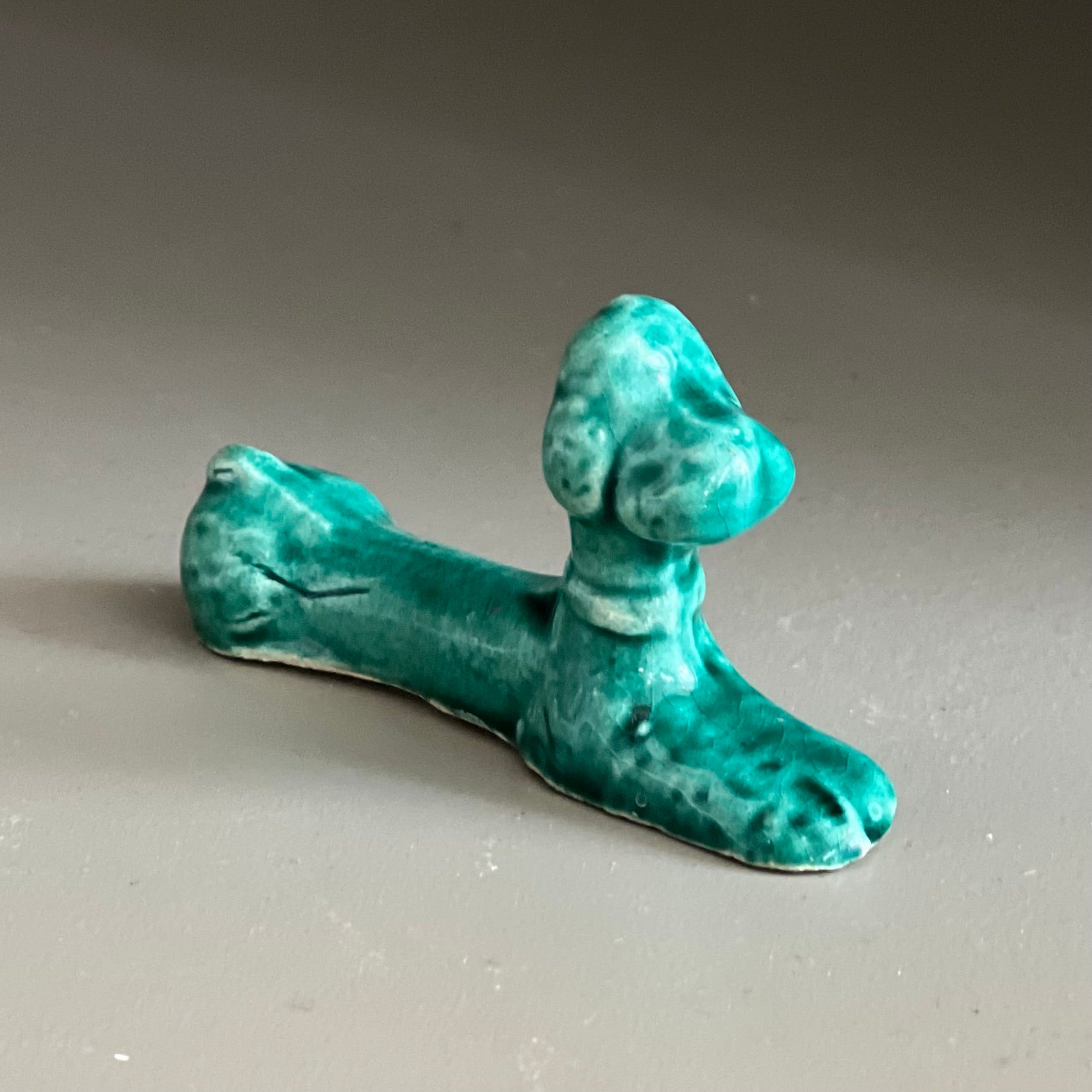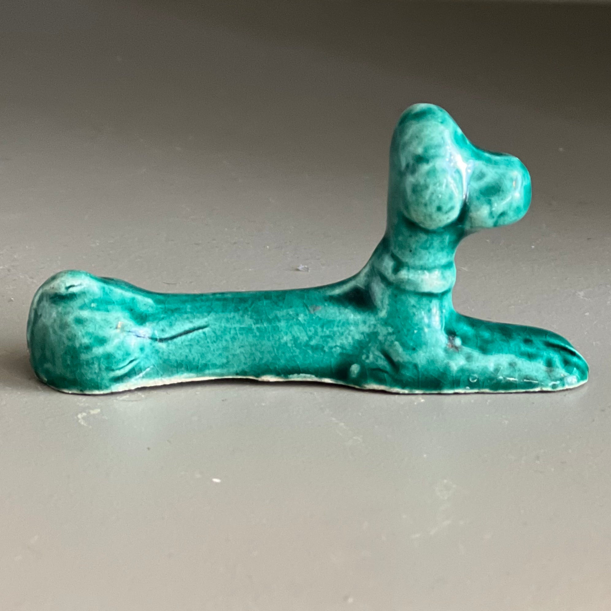 Smörtax i porslin form av en liggande pudel - möjligen Vallauris. Dekorativt objekt, perfekt att vila smörkniven på.