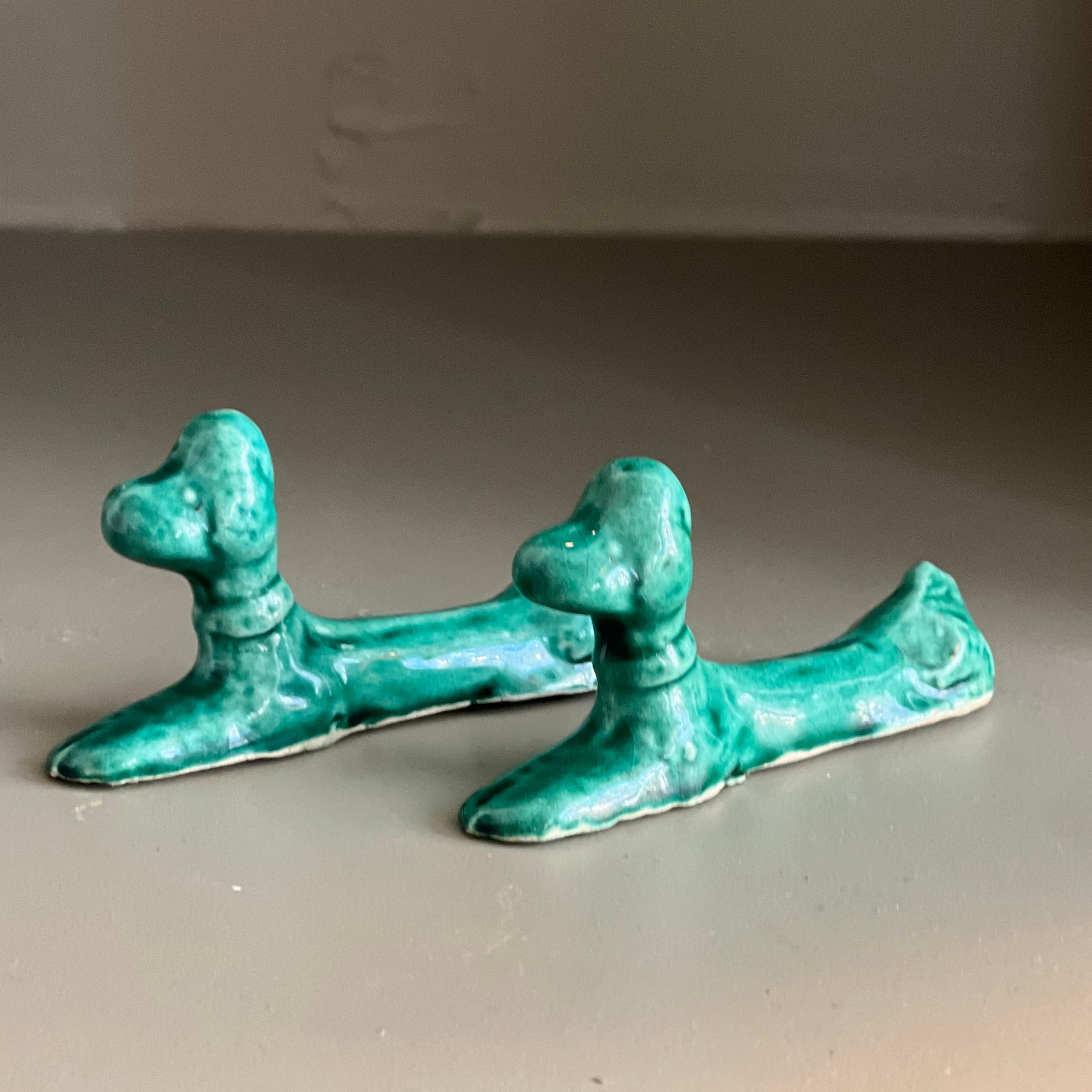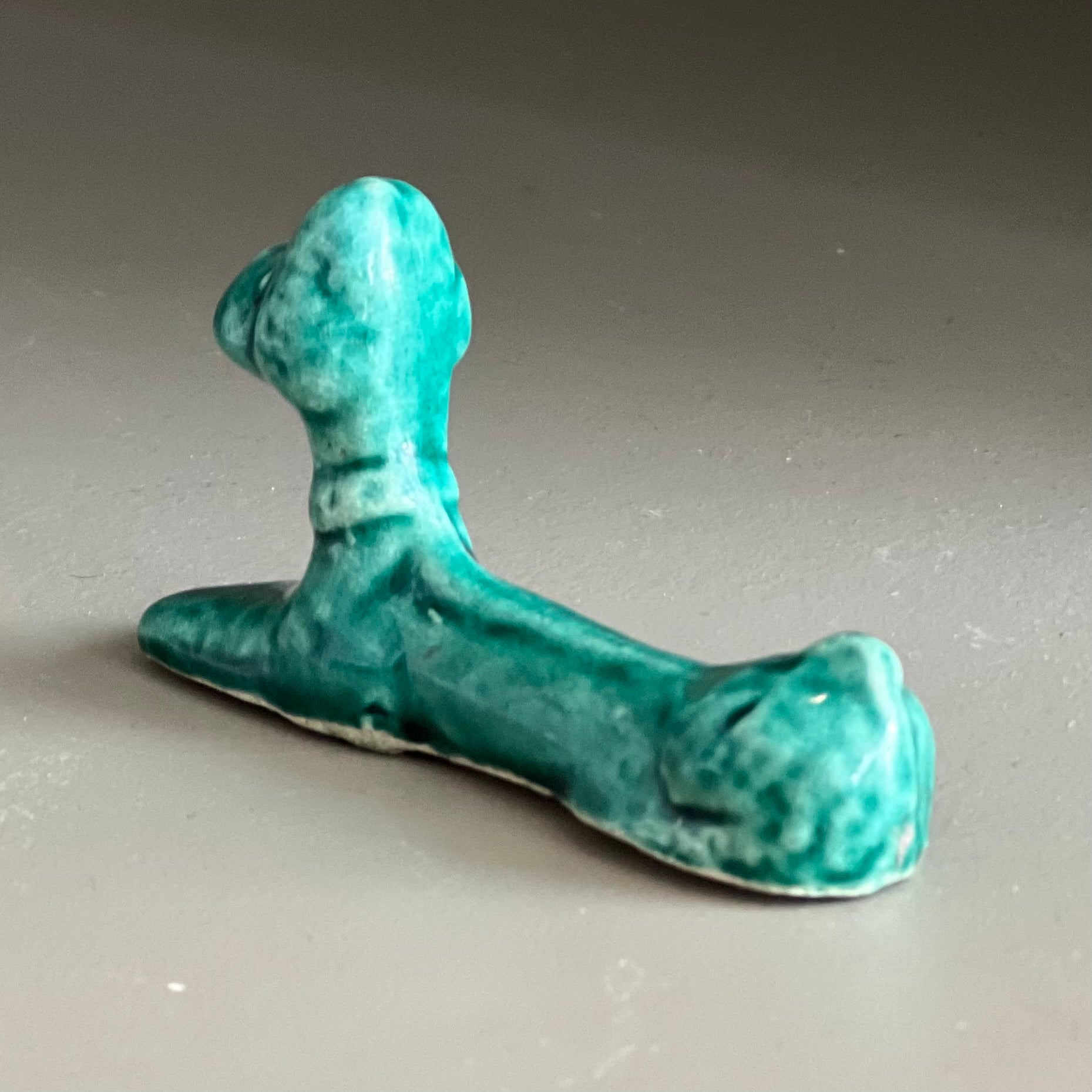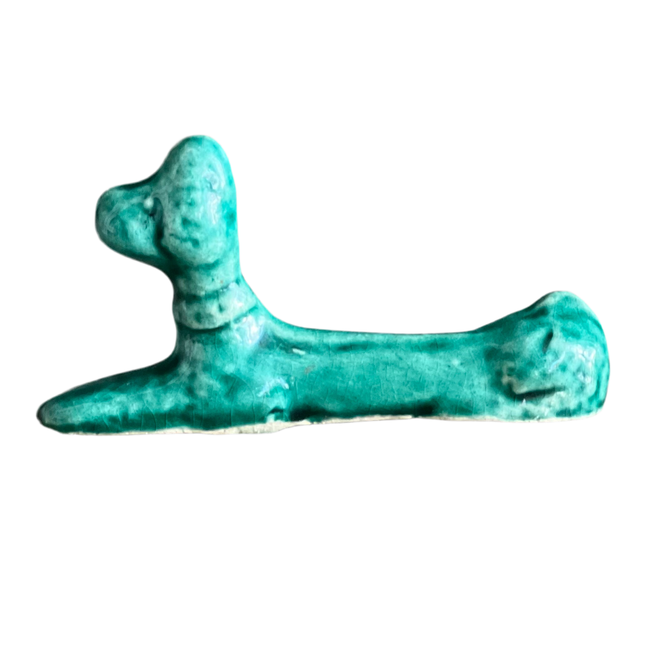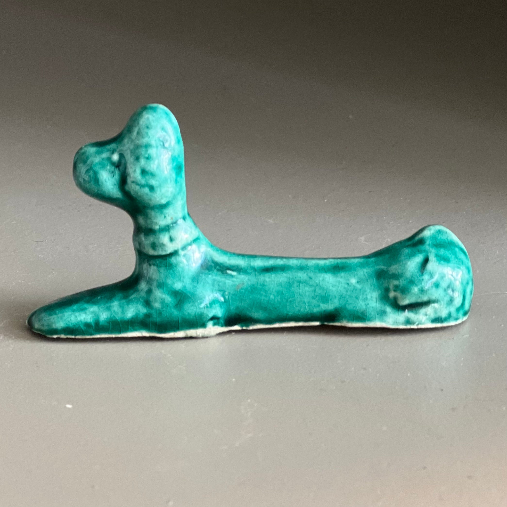Smörtax i porslin form av en liggande pudel - möjligen Vallauris. Dekorativt objekt, perfekt att vila smörkniven på.