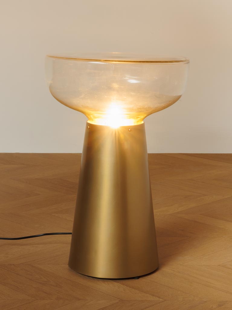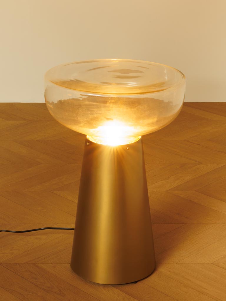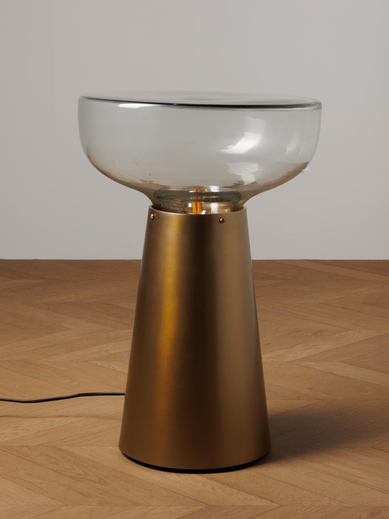 Detta sidobord fångar blicken och skapar atmosfär i rummet tack vare sin inbyggda belysning. Bordsskivan är i glas medan underdelen bärs upp av en elegant metallram — en kombination av transparens, struktur och ljus. När bordet är tänt förvandlas ytan till ett mjukt, diffus sken som lyfter fram dekorationer, böcker eller små prydnadsföremål på toppen. I släckt läge lever den minimalistiska formen vidare som en grafisk detalj i inredningen.