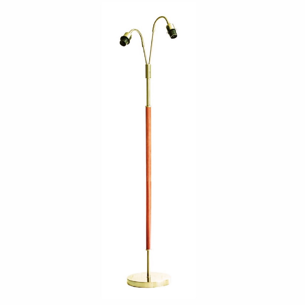Tvåarmad golvlampa från svenska Hallbergs. Perfekt för läs och stämningsbelysning. Kombinera med önskade lampskärmar (med toppfäste) för att passa just ditt hem.