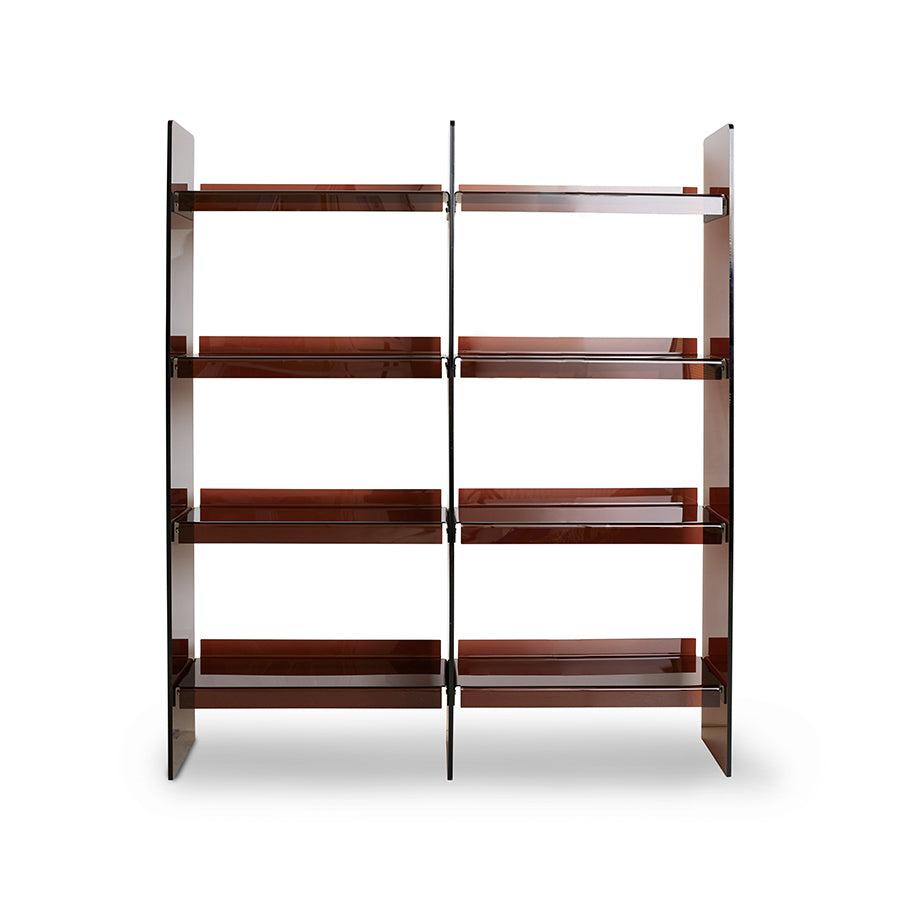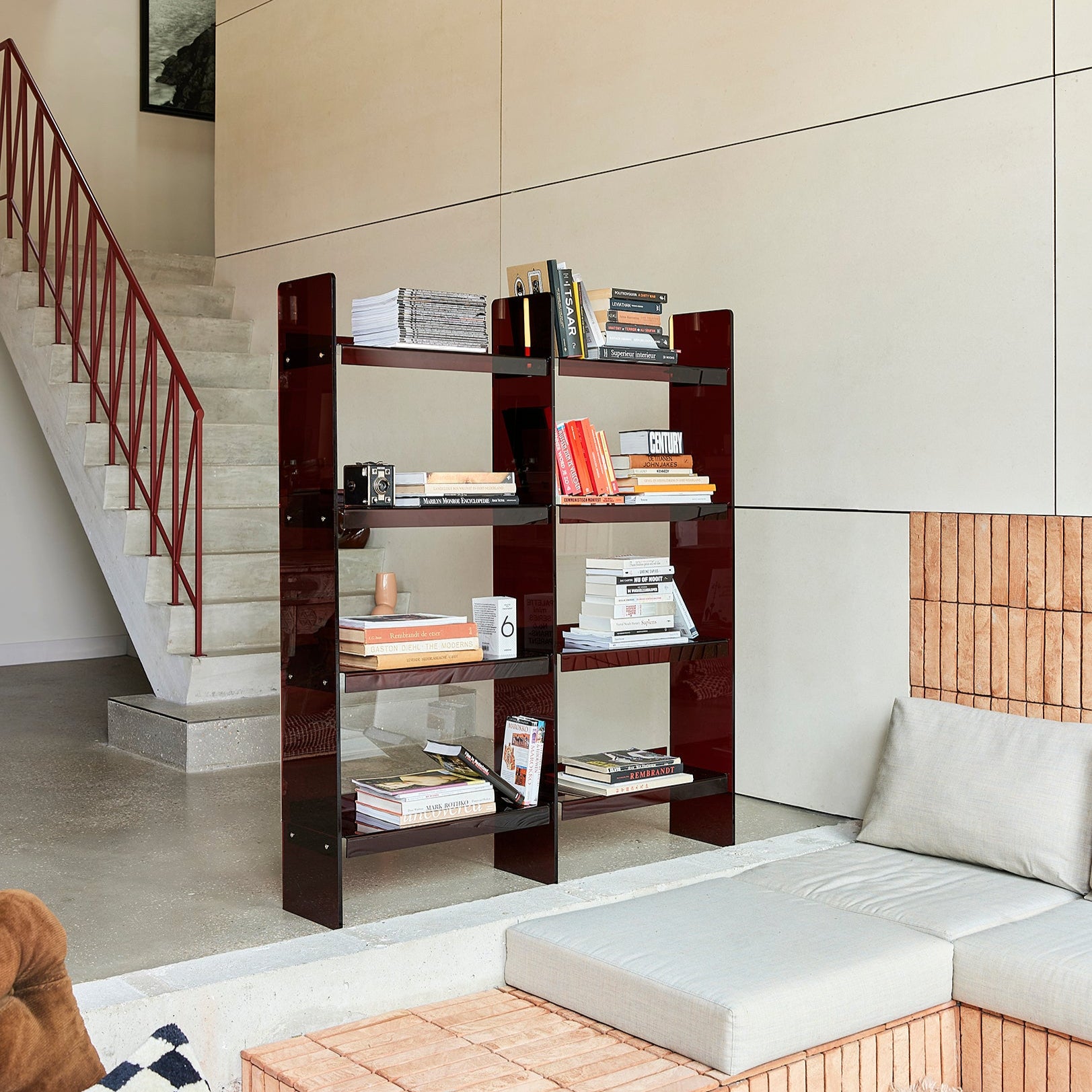 Denna akrylhylla i rökigt brunt är både ett designstatement och en smart förvaringslösning. Använd den som en transparent rumsavdelare, där du visar upp dina favoritböcker, konstföremål eller samlingar. Den fungerar lika bra i ett vardagsrum med sneakers på display som i ett mindre badrum för stilren förvaring av accessoarer. Med sin luftiga känsla och blanka finish blir den en modern och flexibel möbel i alla typer av hem.