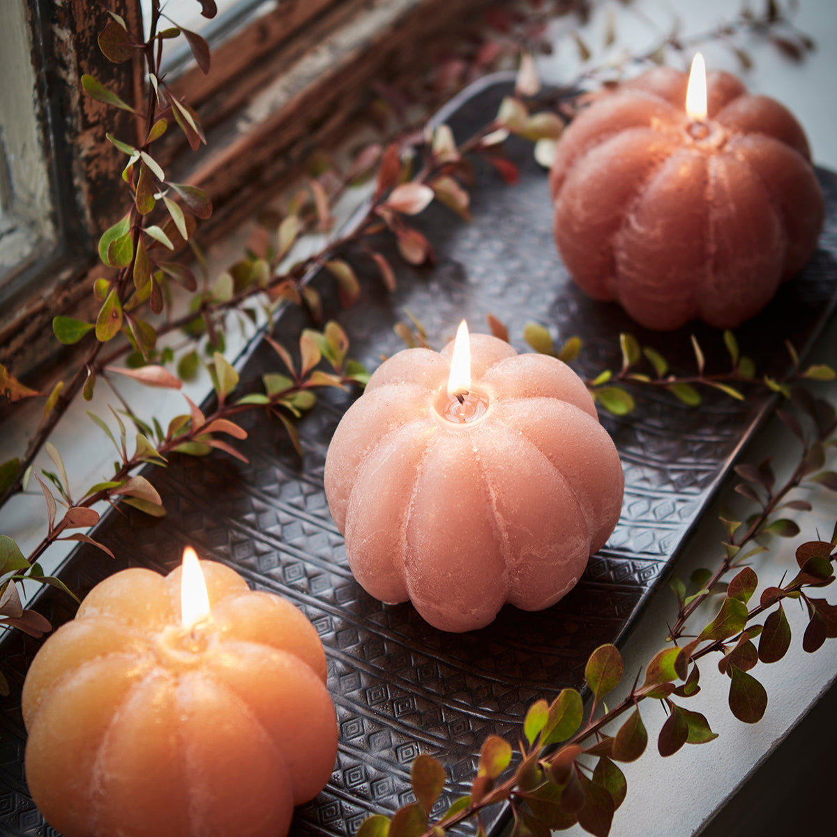 Skapa värme och mys hemma med detta dekorativa pumpaljus i nyansen “Ockra”. Ljuset är genomfärgat och handgjort – en elegant detalj som lyser upp både höstmörkret och vardagsrummet.