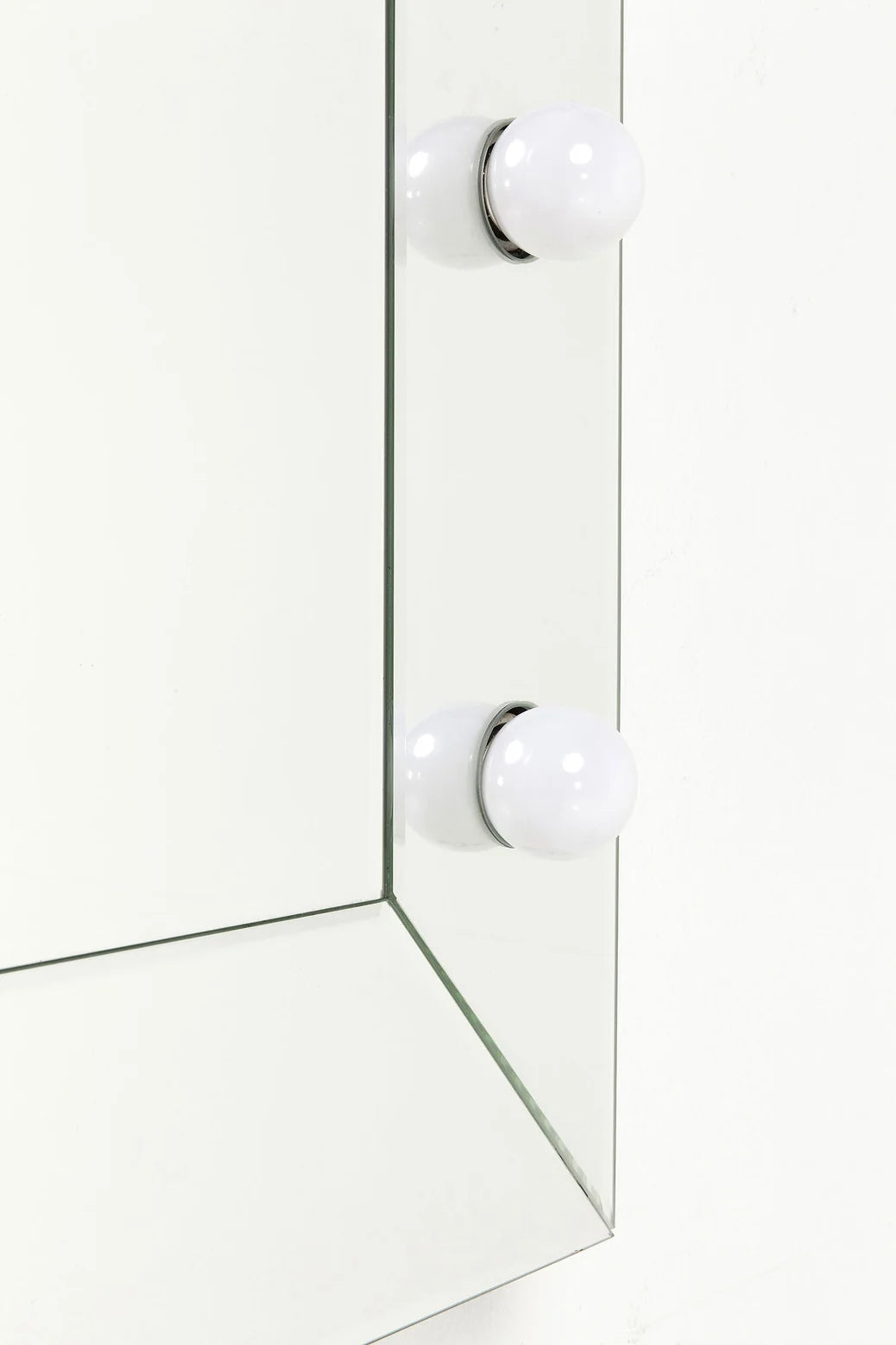 Make Up Mirror från KARE Design är en elegant och glamourös spegel som ger din sminkplats en exklusiv känsla. Den spegelblanka, silverfärgade finishen och den integrerade belysningen skapar en lyxig Hollywood-inspirerad look samtidigt som den ger jämn och funktionell ljussättning.