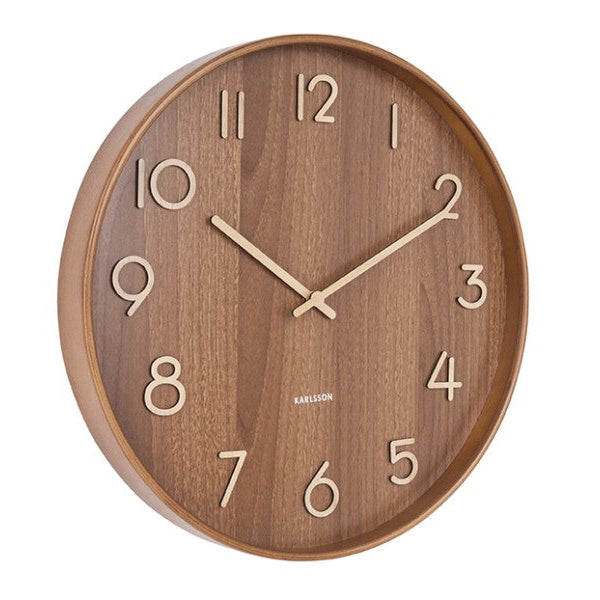 Tänk dig en klocka som bara finns där — utan att störa, utan att ta över. Pure Medium från Karlsson är just det: en rund väggklocka med ett naturligt uttryck i varm, mörk träfinish som lugnar rummet och ger en känsla av enkel, skandinavisk harmoni.