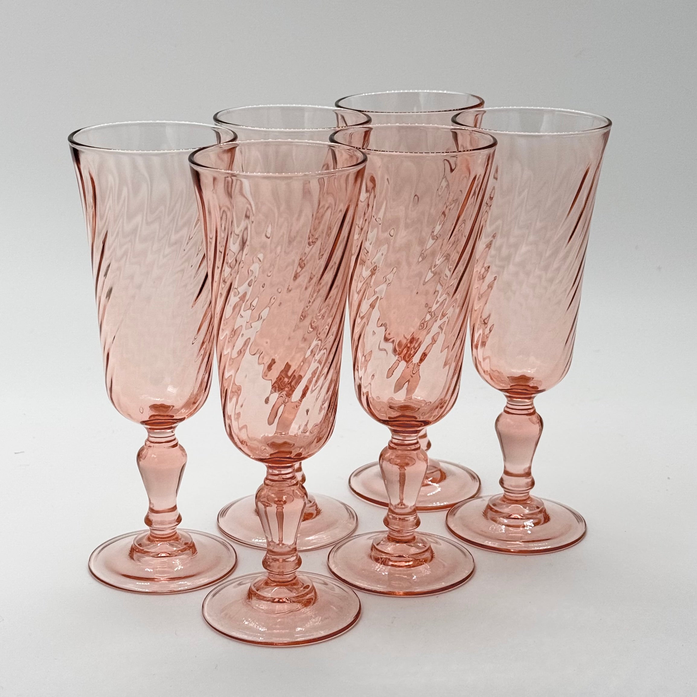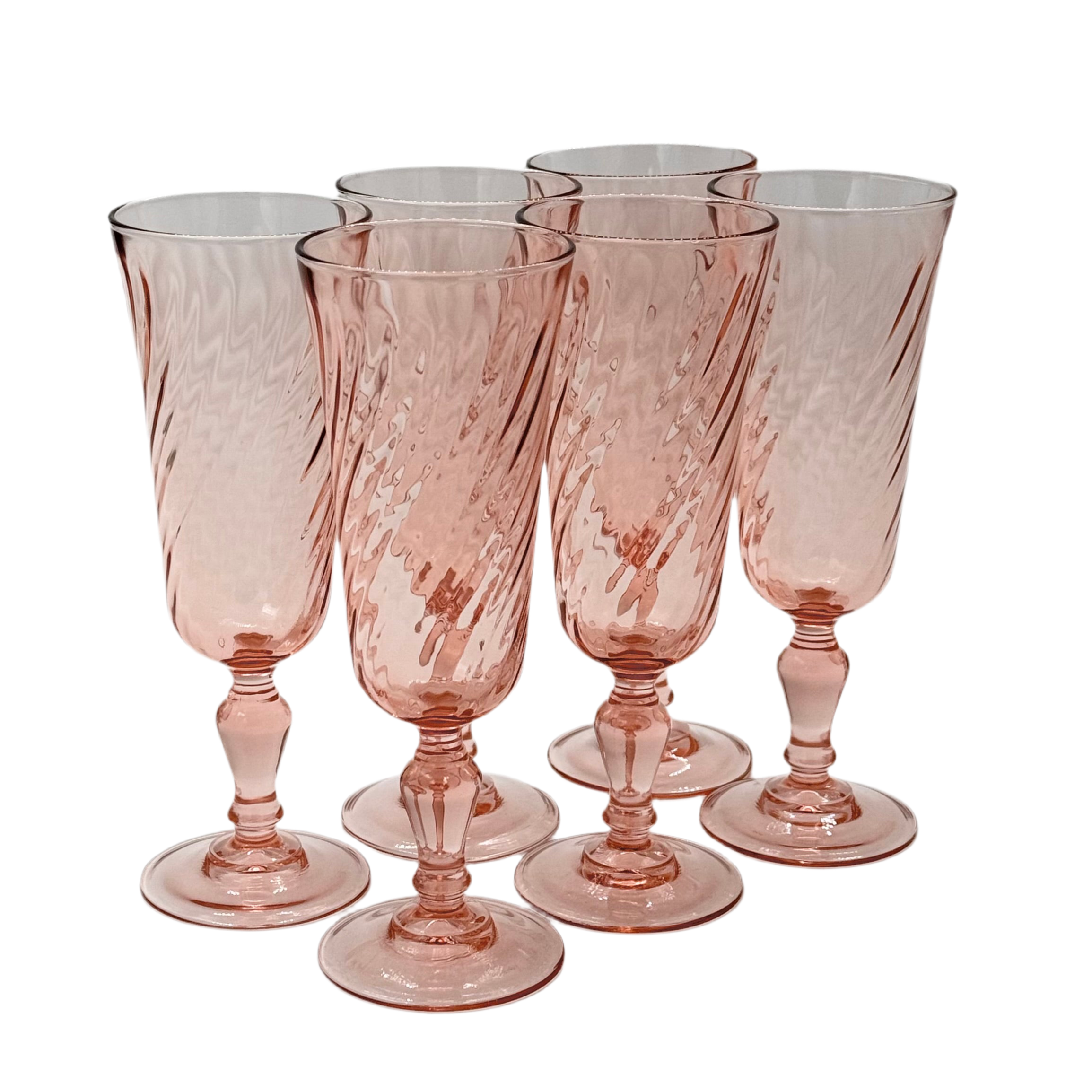 De ikoniska rosa glasen Rosaline från D’Arques-Durand är ett älskat exempel på fransk glaskonst. Serien, med sin mjukt skulpterade form och karakteristiska spiralvridna dekor, lanserades under mitten av 1900-talet och har blivit en eftertraktad vintageklassiker världen över.