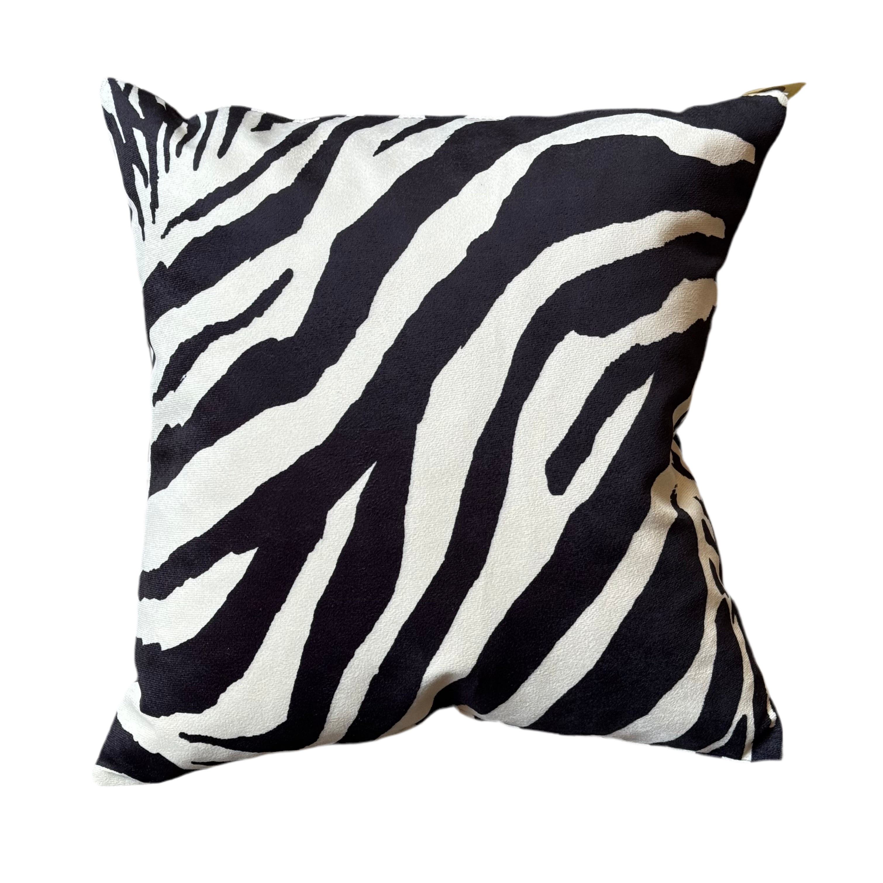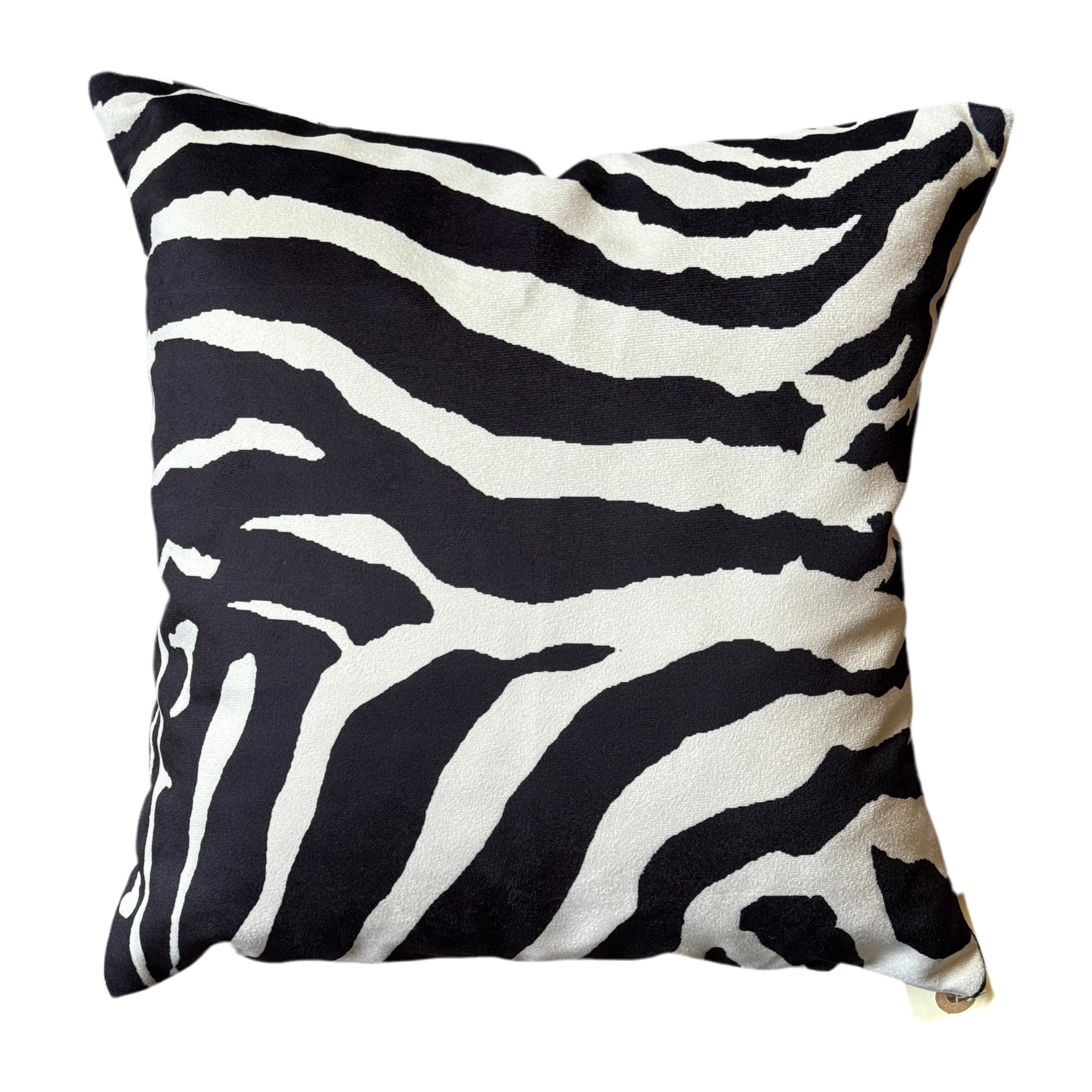 Kudde i zebramönstrat tyg. Uppsytt av vår tapetserare.