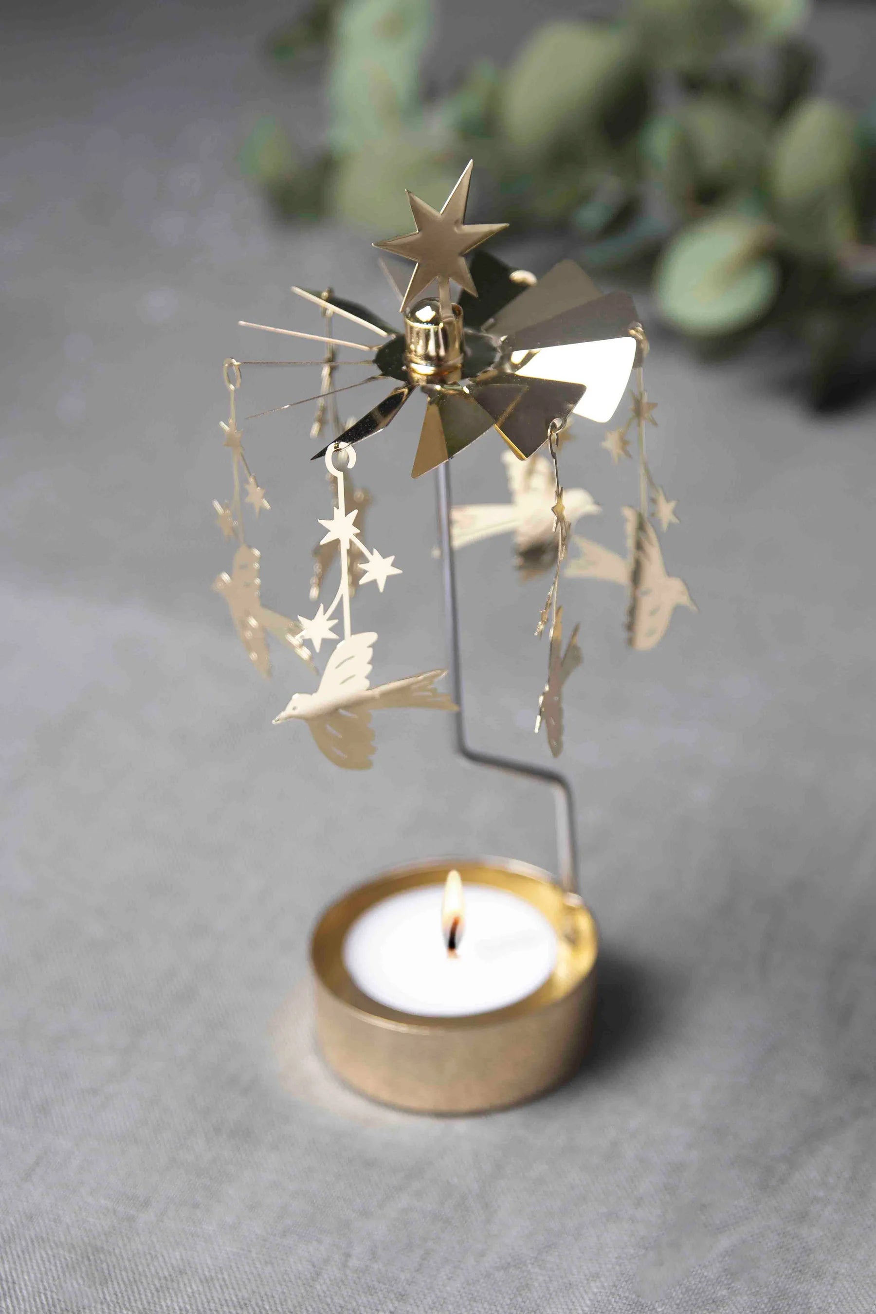 Snurrar av värmen från ljuset, ett värmeljus medföljer i förpackningen.