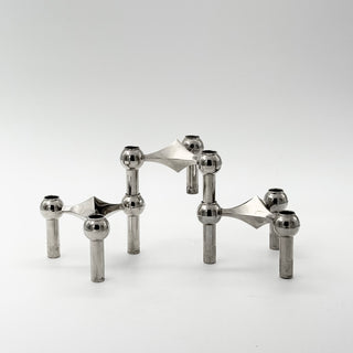 Välj mellan både nyproducerade och vintage Nagel ljusstakar eller varför inte blanda in de nyframtagna delarna med dina vintage original. Bygg ihop ditt eget ljusstakskonstverk och skapa en atmosfär som både är funktionell och vacker.