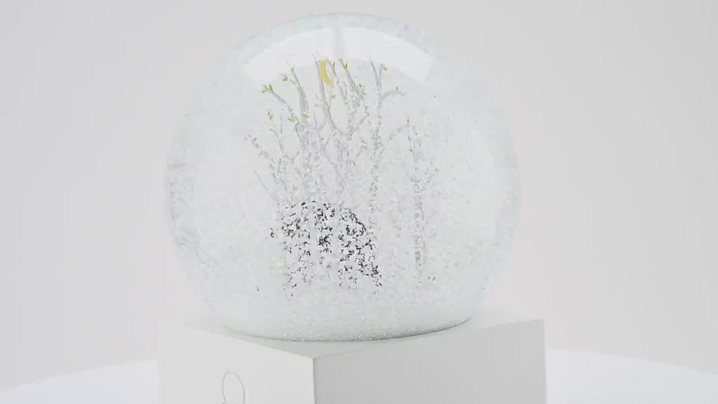 När våren gör sitt intåg spricker snön upp och gröna blad spirar. Under månens mjuka sken träder räven och björnen fram — törstiga efter livet som väntade under vinterns vila. I denna snöglob fångas just det ögonblicket av förväntan och återkomst, där naturens band väcks till liv igen.