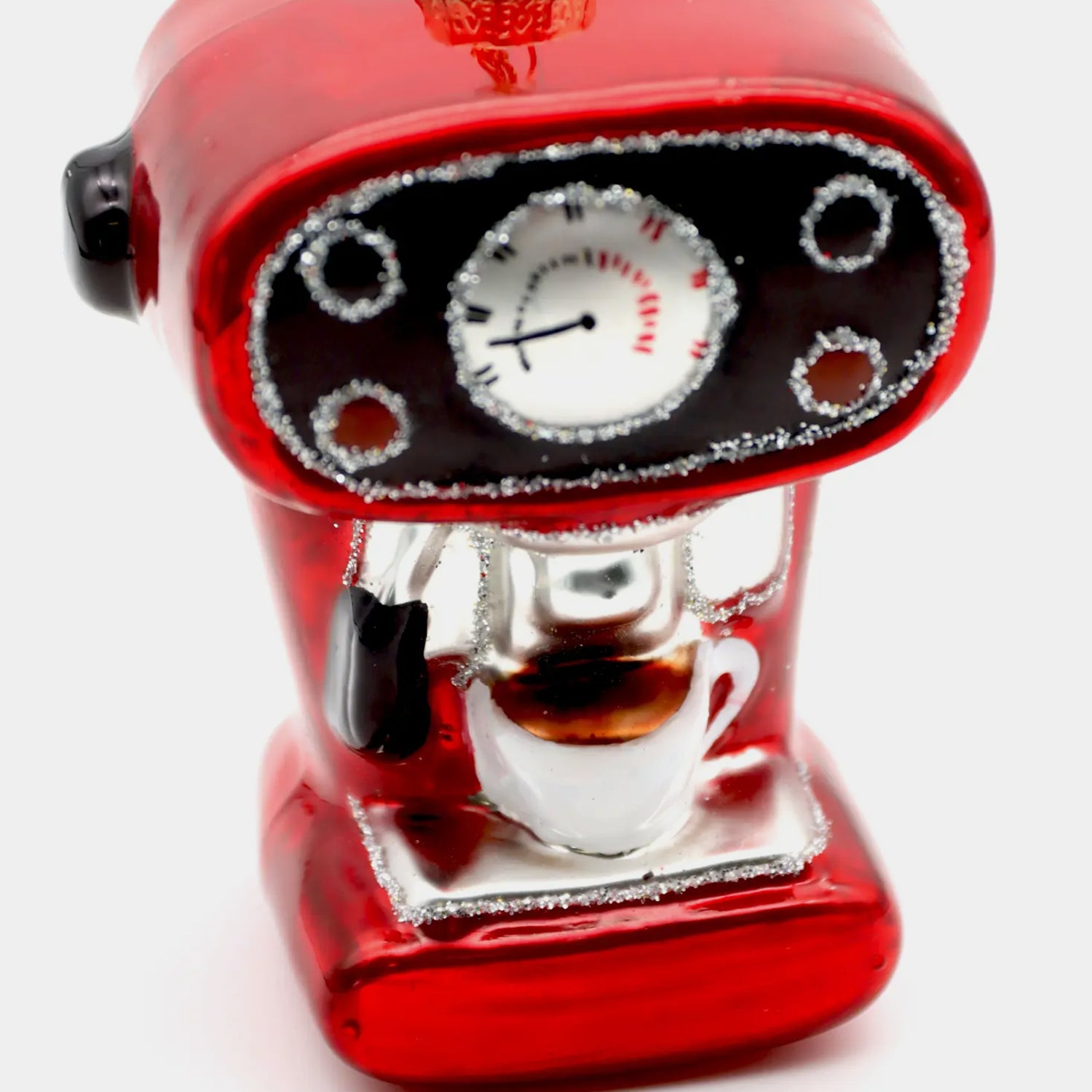 Förgyll granen med en glittrande hälsning till alla som älskar doften av nybryggt kaffe. En espressomaskin i glas som fångar vardagslyxen i miniformat – en oväntad och elegant detalj som väcker både leenden och julstämning.