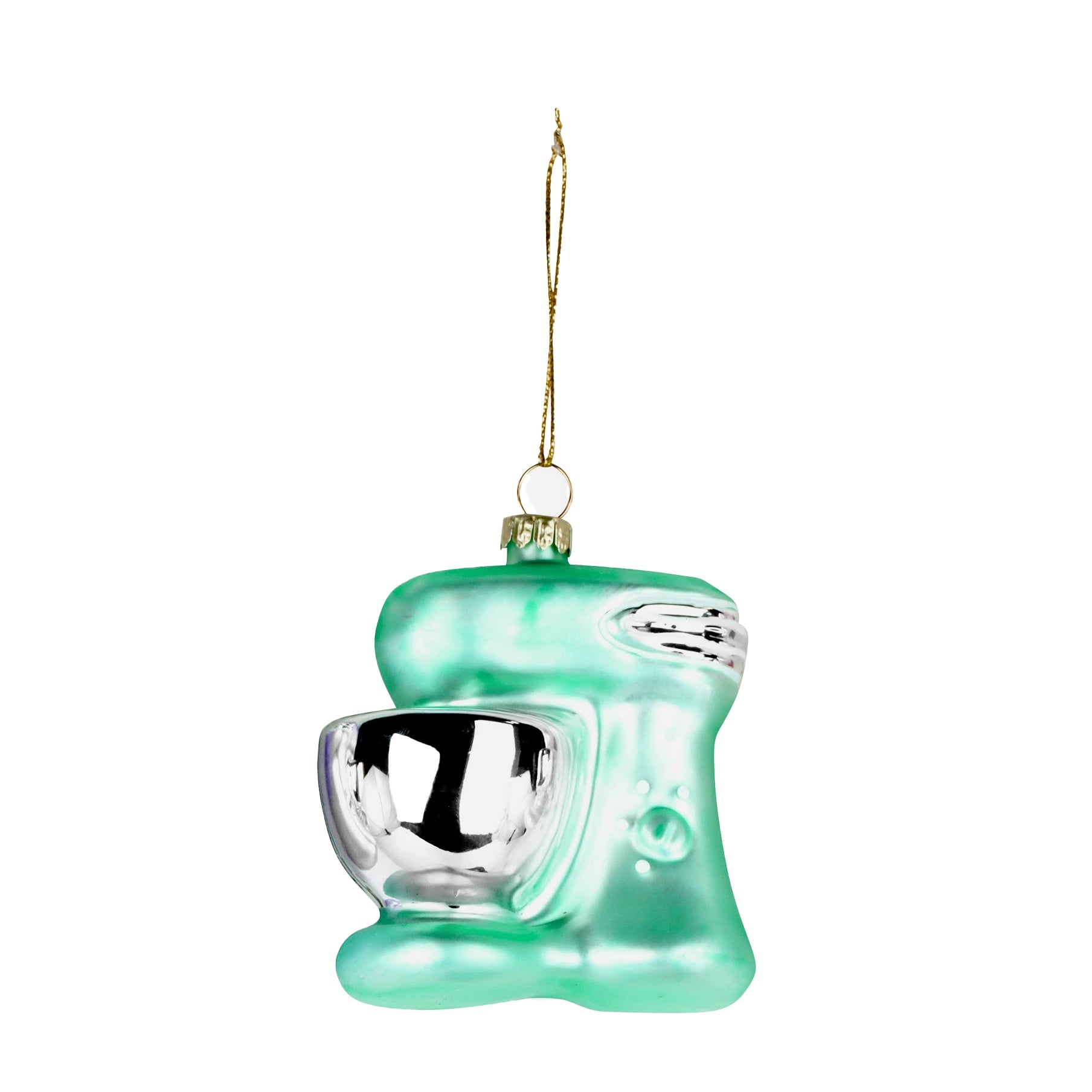 Låt granen få en frisk och lekfull touch med en turkos mixer i glas! Den gnistrande retrodesignen väcker minnen av färgglada kök och doften av nybakat. En charmig och glädjefylld dekoration som blandar nostalgi med glittrande elegans.