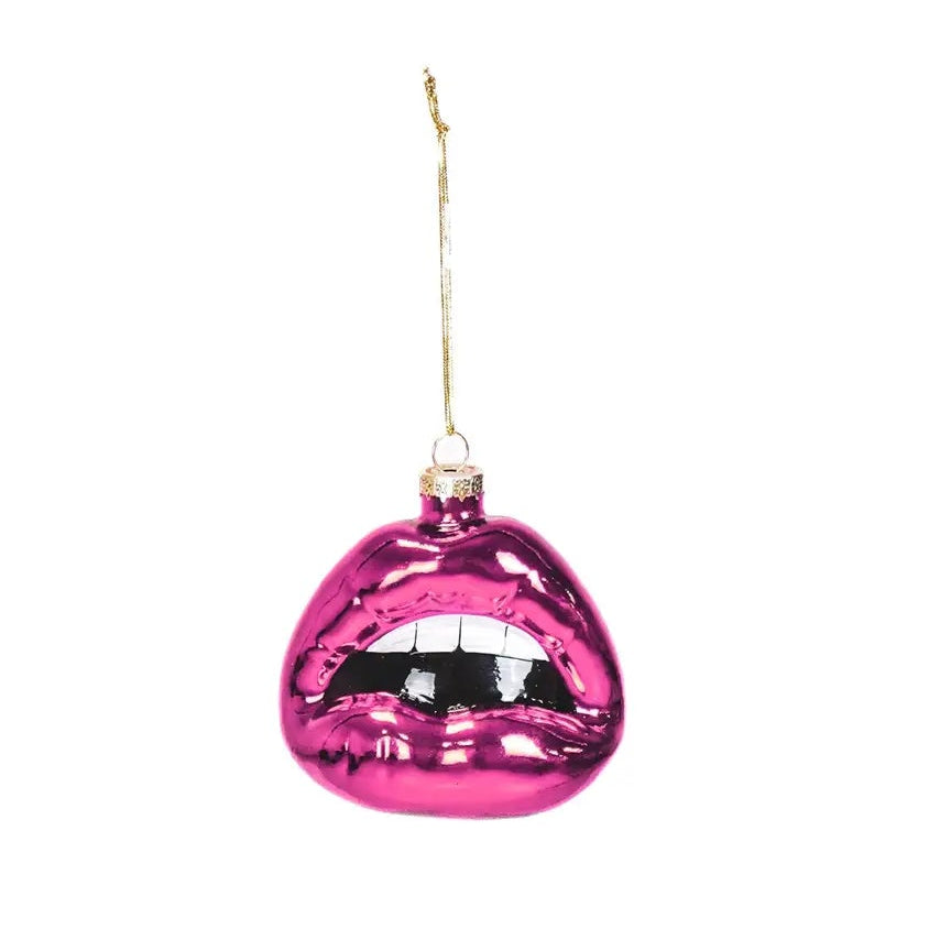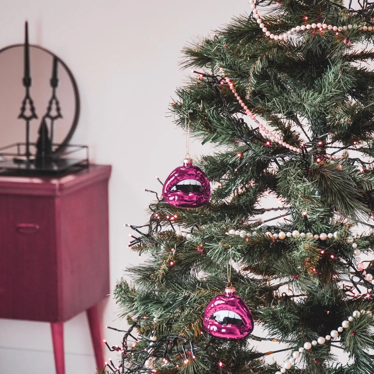 Lekfull julgranskula formad som rosa läppar – ett charmigt blickfång som tillför både attityd och glimt i granen. Perfekt för den som vill kombinera humor, kitsch och modern julestetik i dekorationen.