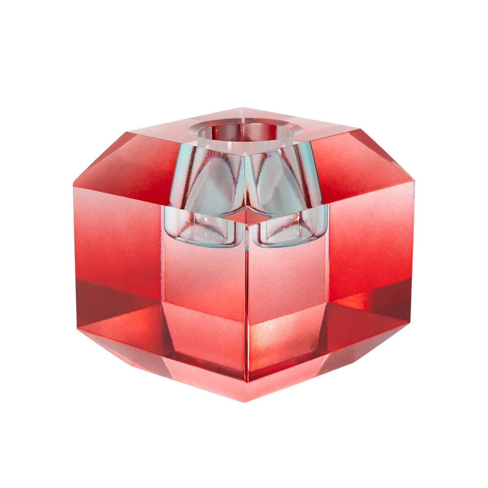 Ljusstake i färgat kristallglas. Kombineras vackert med fler kristall-ljusstakar i andra storlekar och färger.