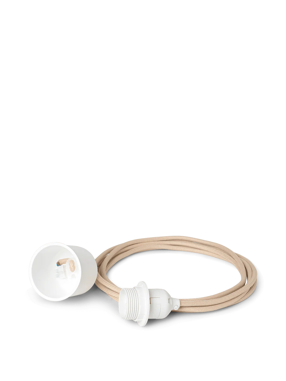 Denna eleganta och minimalistiska lampsladd i sandfärgad textil är en perfekt lösning för dig som vill skapa en stilren och skräddarsydd takbelysning. Med sin 2 meter långa sladd, E27-sockel och takkåpa i plast kan du kombinera den med din favoritlampa för att forma en personlig ljuspunkt i hemmet.