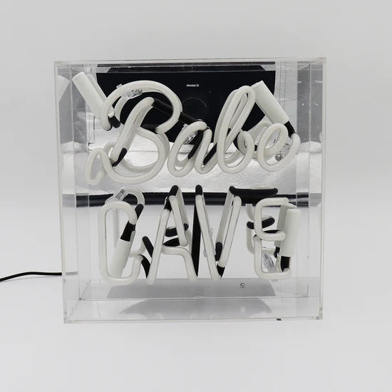 Ge ditt rum en unik och livfull atmosfär med denna 'Babe Cave'-neonbox! Dess mjuka, färgstarka sken skapar en inbjudande känsla och blir en iögonfallande detalj i vilket utrymme som helst – perfekt för hemmet, kontoret eller som en personlig touch i din inredning.