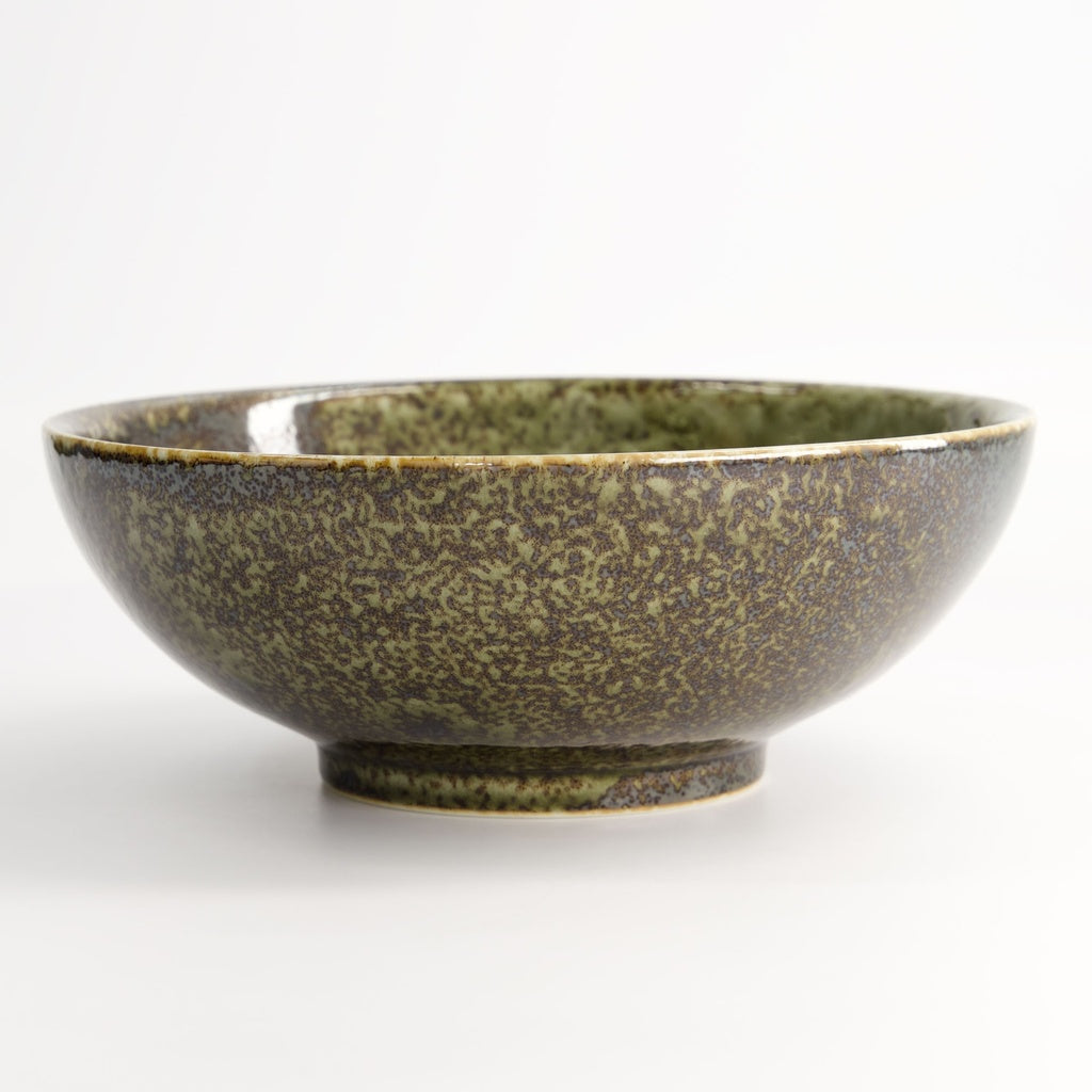 Låt bordet dras in i naturens lugn med Shinryoku Green. Den mjukt gröna glasyren har en djup tonalitet som påminner om skogsstigar i dova morgonljus och skapar en rogivande atmosfär. Skålen har generösa proportioner med sina mått 21,3 × 8,2 cm och rymmer 1450 ml — perfekt för mustiga nudelsoppor, risrätter eller kombinerade rätter som kräver utrymme och stil.