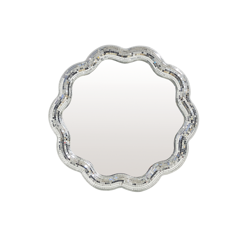 En liten men effektfull spegel med facettslipad spegelmosaik runt kanterna – perfekt för att skapa en drömsk, poetisk stämning i hemmet.