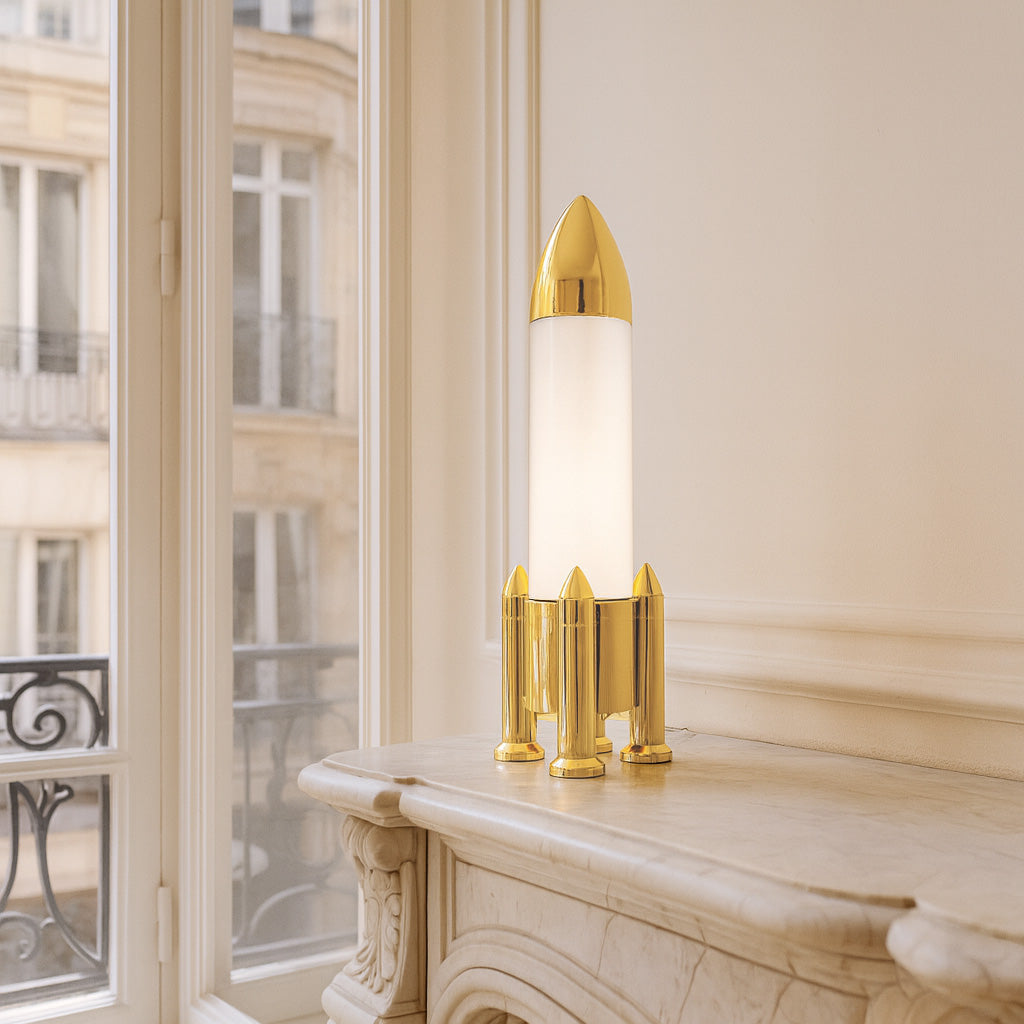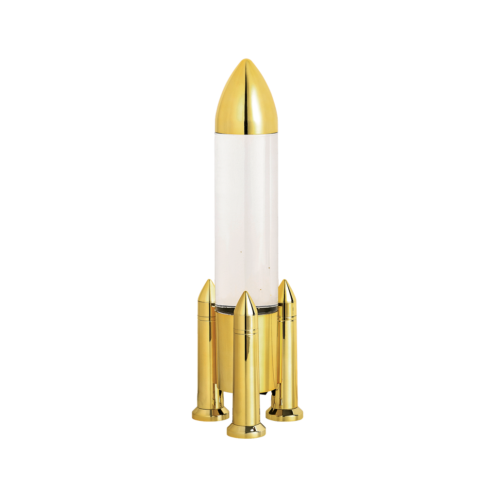 Dekorativ Raketformad lampa med guldigt glitter som virvlar runt när lampan är tänd.