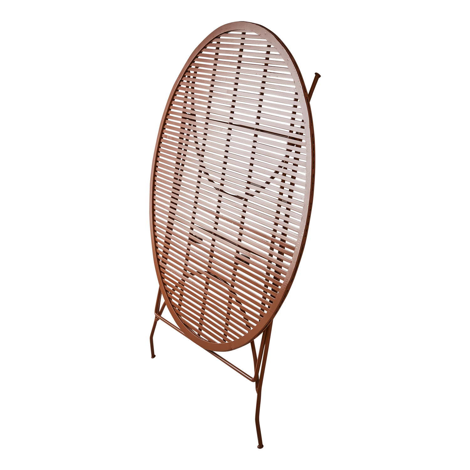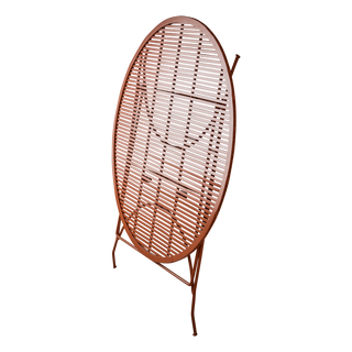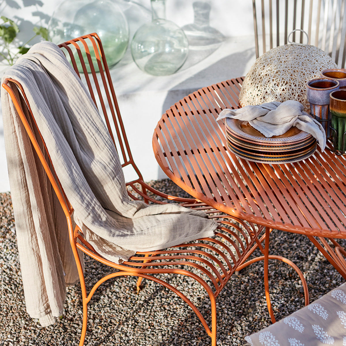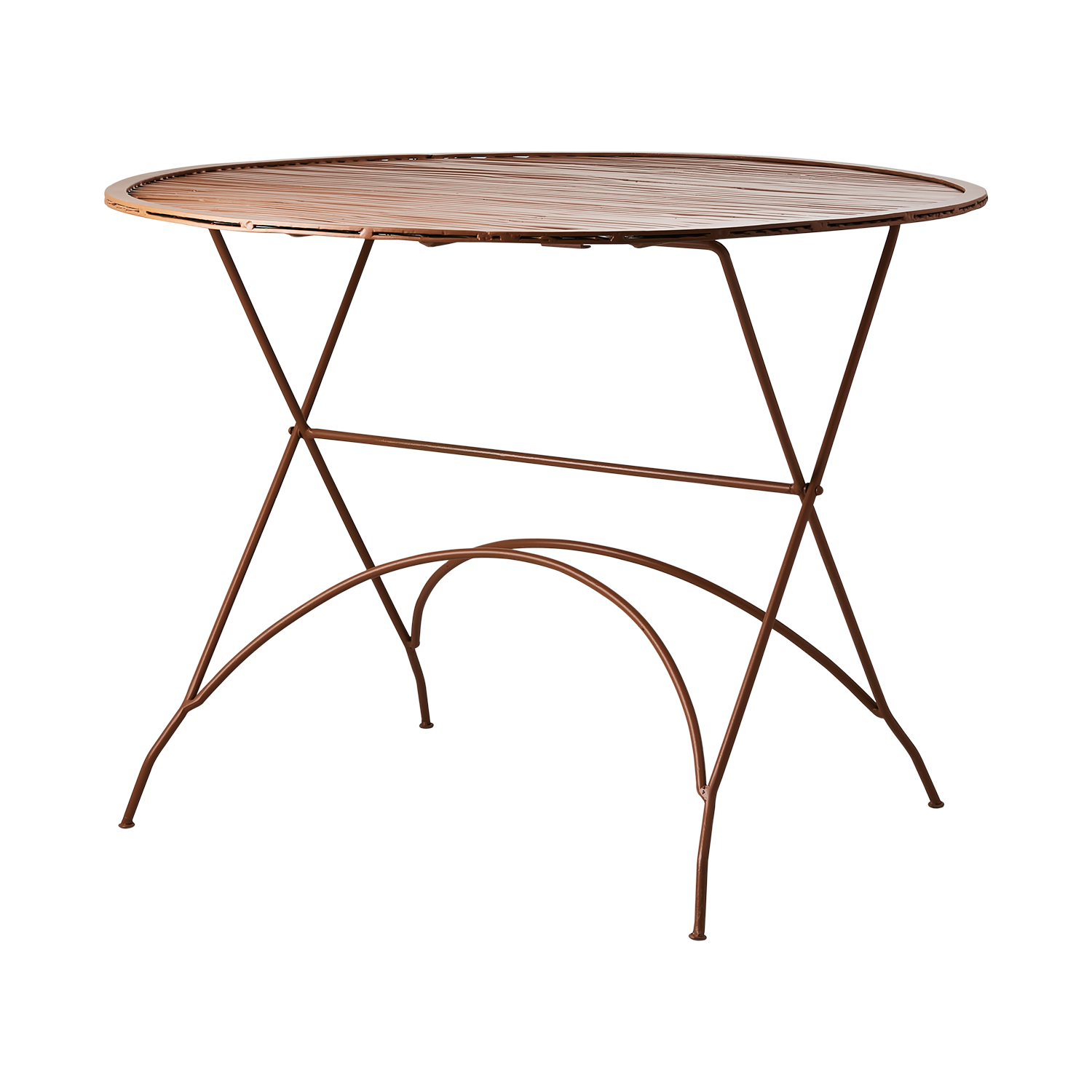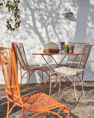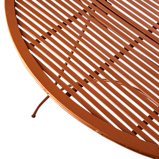 Vackert runt utebord i en underbar varm dimorange färg. Tåligt, tidlöst och perfekt för trädgård eller terrass. Kan fällas ihop för smidig förvarig.