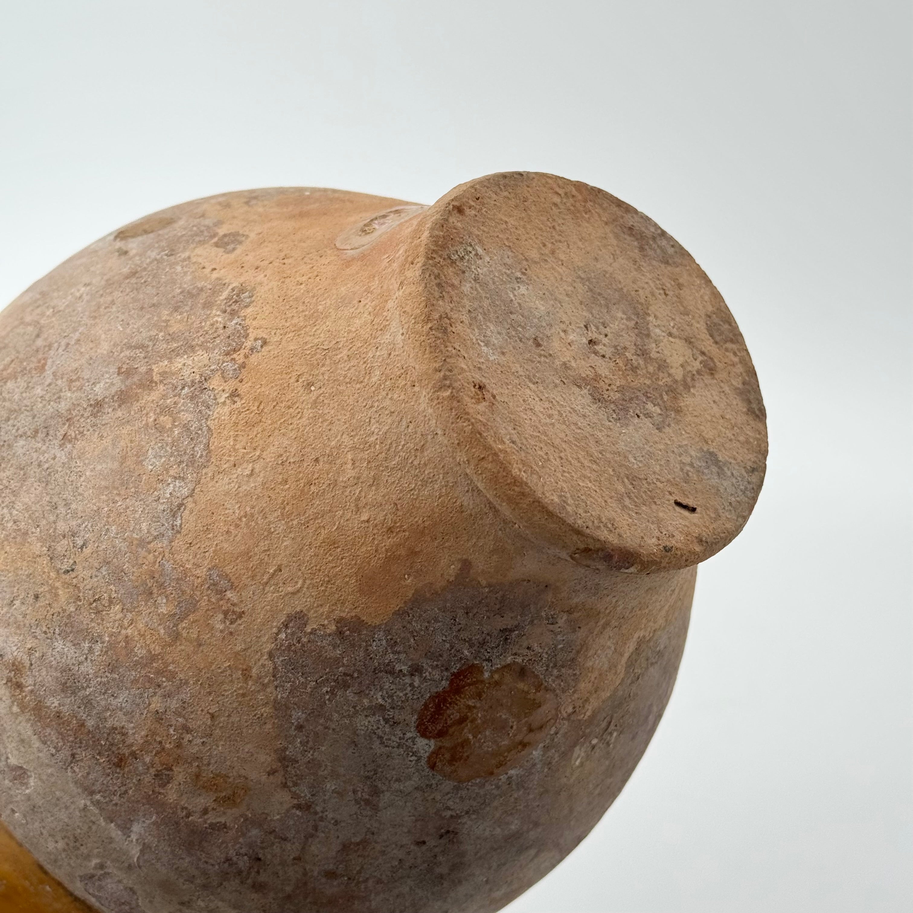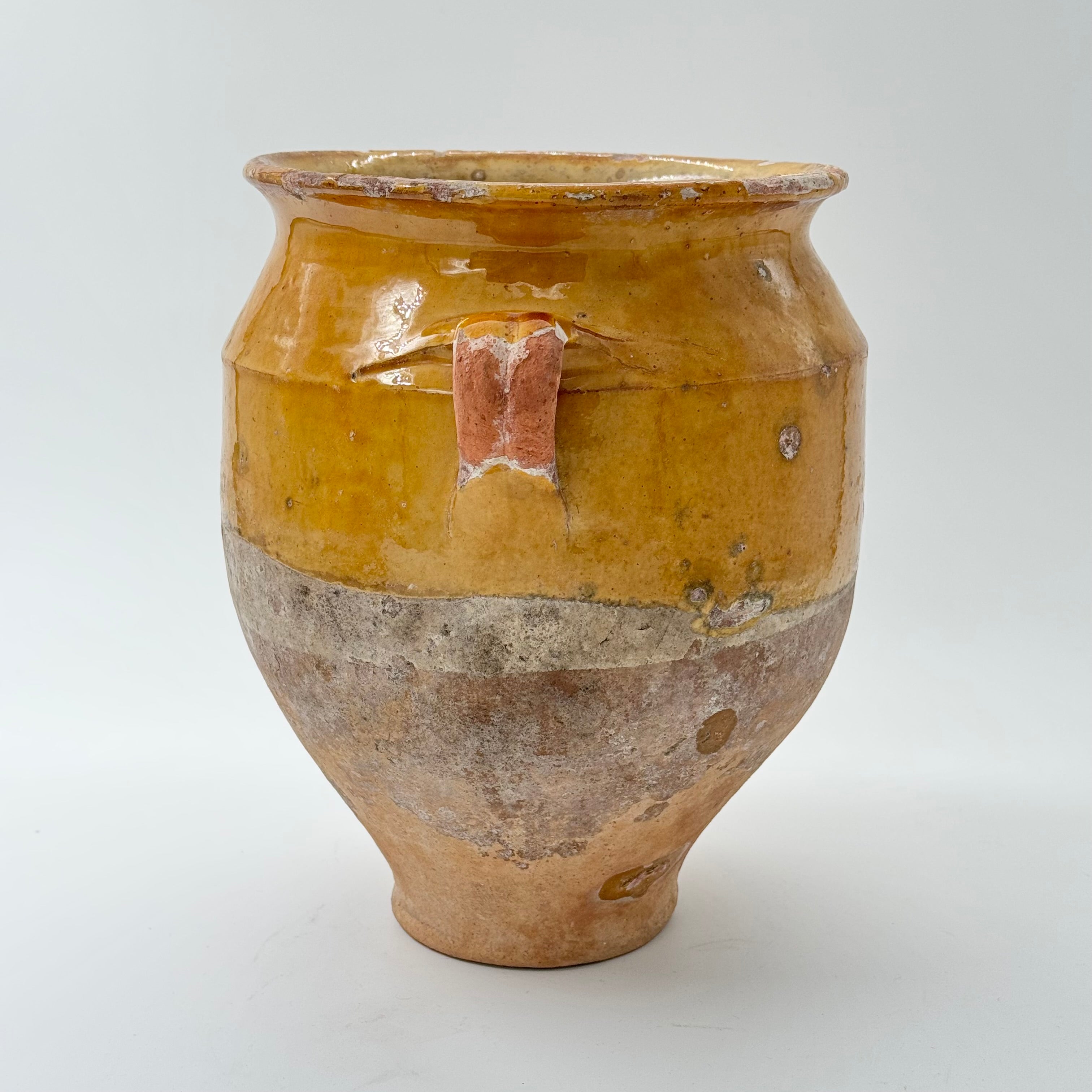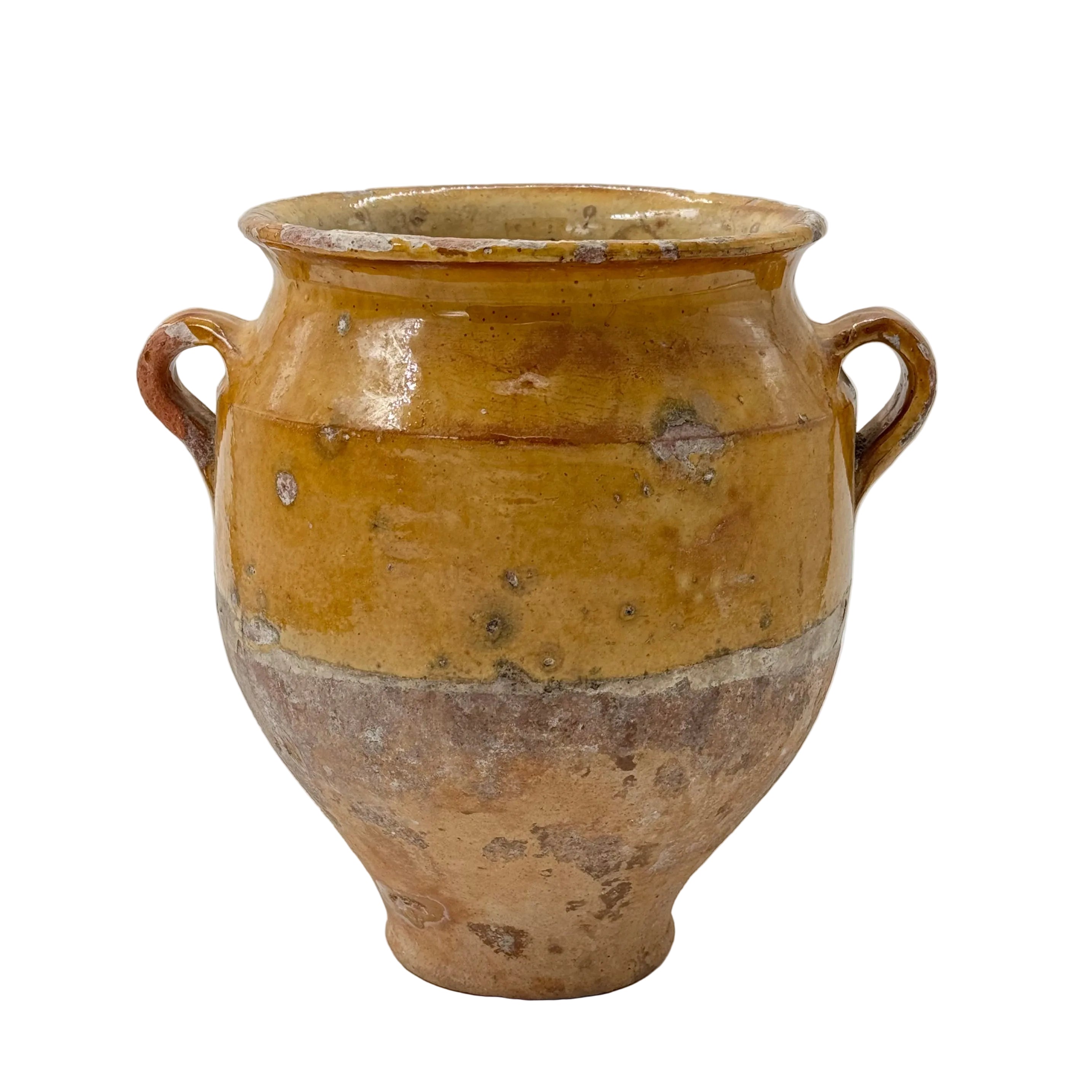 Antik fransk terrakottakruka med en själfull patina som vittnar om generationers användning. Den bär spår av tidens gång – skönheten i slitaget gör varje kruka unik, som ett poetiskt fragment ur det förflutna. En vacker inredningsdetalj som tillför både historia och värme till hemmet.