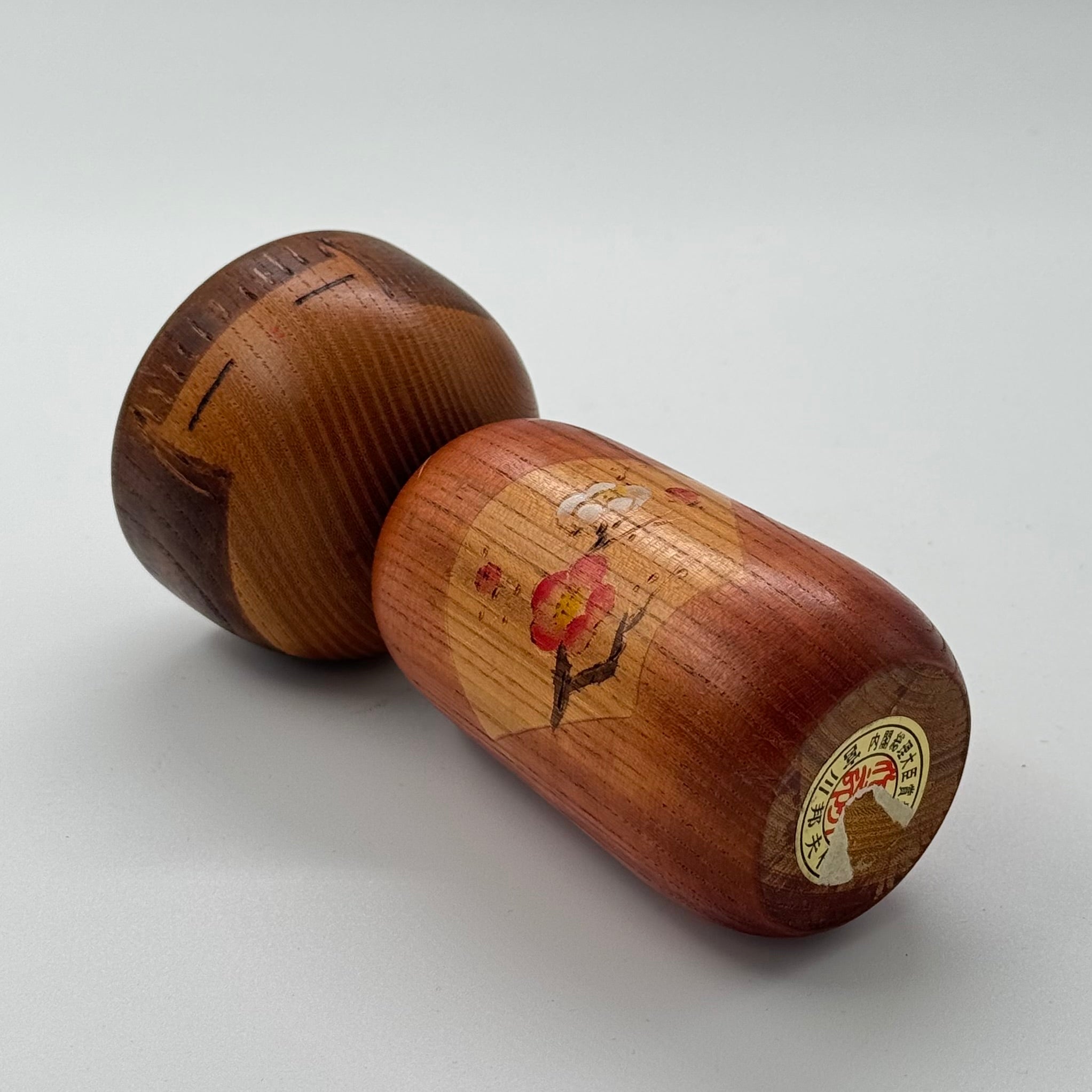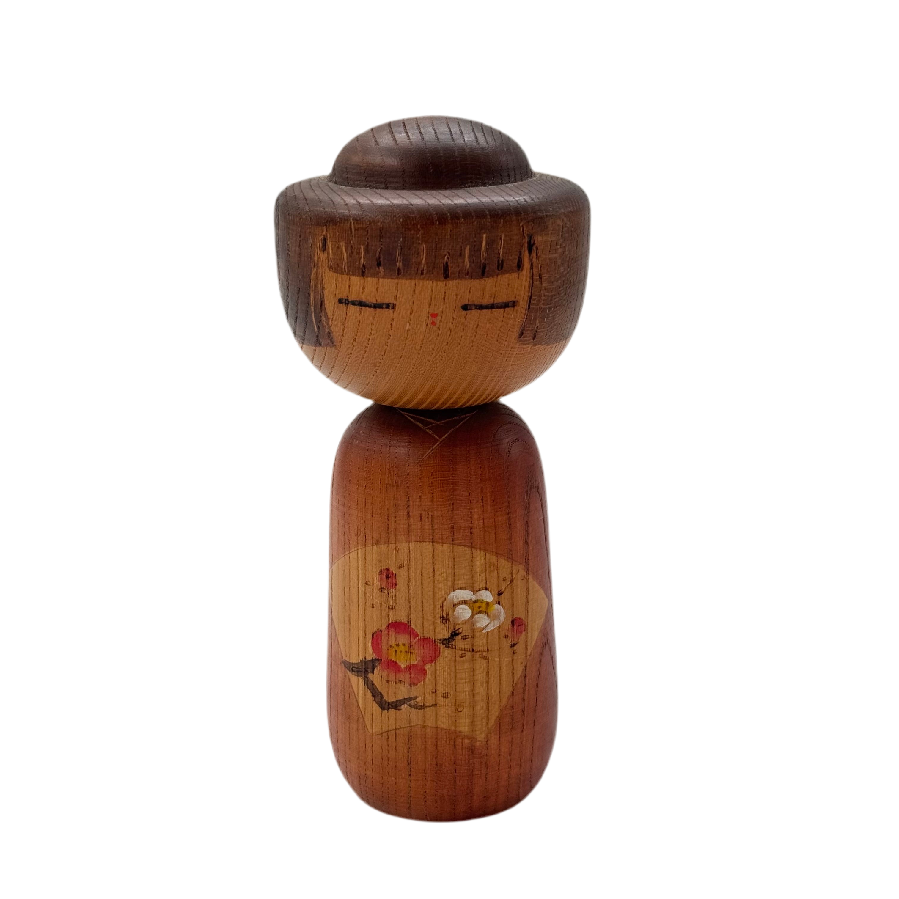 En vacker sōsaku kokeshi-docka (創作こけし) med körsbärsblomsmotiv skapad av den prisbelönte japanske konstnären Kunio Miyagawa (född 1933). Miyagawa (宮川邦夫) är känd för sina eleganta och harmoniska former och har tilldelats det prestigefyllda Premiärministerns pris vid två tillfällen, vilket gör hans verk särskilt eftertraktade bland samlare.