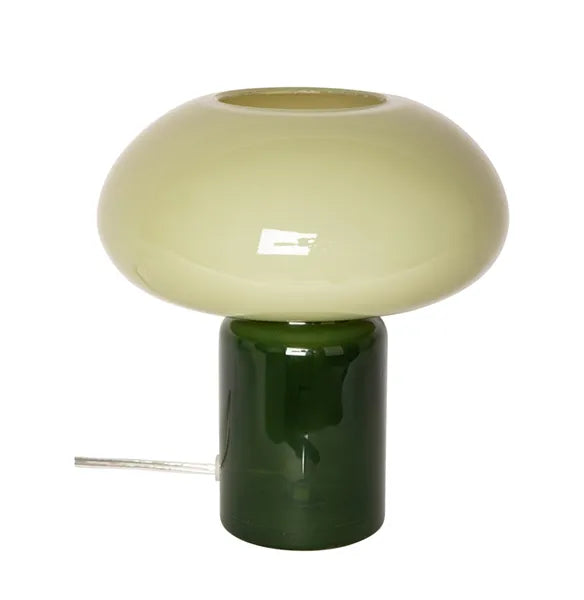 Decorative mushroom-shaped table lamp in lovely green tones.