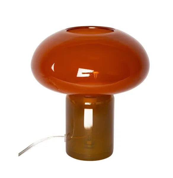 Decorative mushroom-shaped table lamp in a warm brown and amber tone.