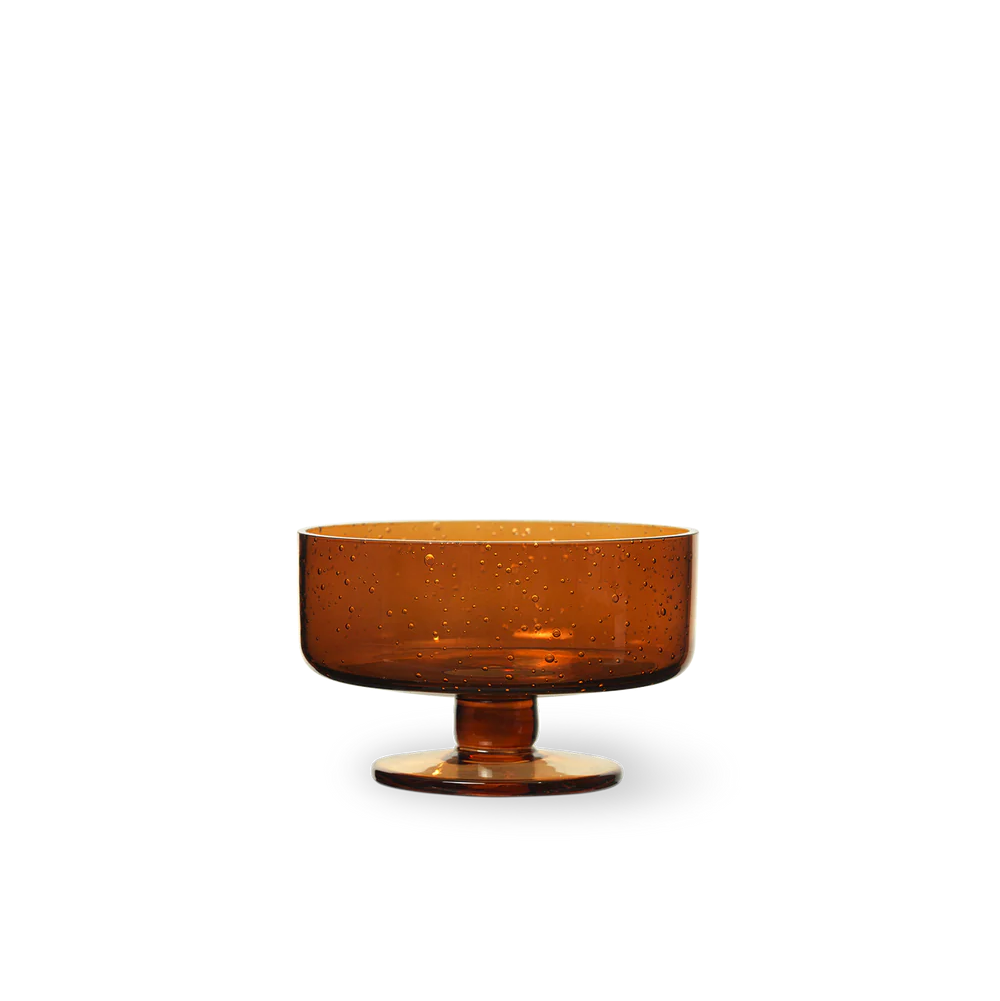 The versatile Oli glassware collection is designed for a relaxed and atmospheric table setting. Set the table for a dinner with friends with Oli Dessert Cups, which are made from 50% recycled glass. To further emphasize their character, the dessert cups feature characteristic small bubbles created by intentionally leaving air pockets between the layers of mouth-blown glass. Each Oli Dessert Cup is unique in thickness and color, thanks to the recycled material and the intricate process of blowing the molten glass into its beautiful shape.