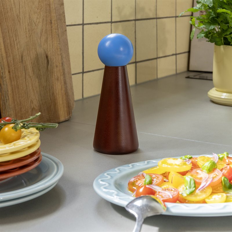 The large salt & pepper mill 'Halma' from & Klevering combines function with form in a way that makes the kitchen a little more fun. Inspired by classic wooden pieces from simple games, and dressed in a warm burgundy tone that lets the natural wood grain shine through.