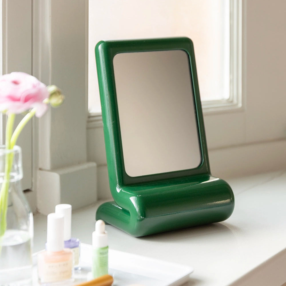 Let the mirror be more than a tool — let it be a work of art. Mirror Vanity Whip Green from &Klevering is round and playful in shape, with soft curves and eye-catching color. With its marshmallow aesthetic and charming silhouette, it is perfect both as a decorative detail and as an everyday hero on the bathroom shelf or bedside table.