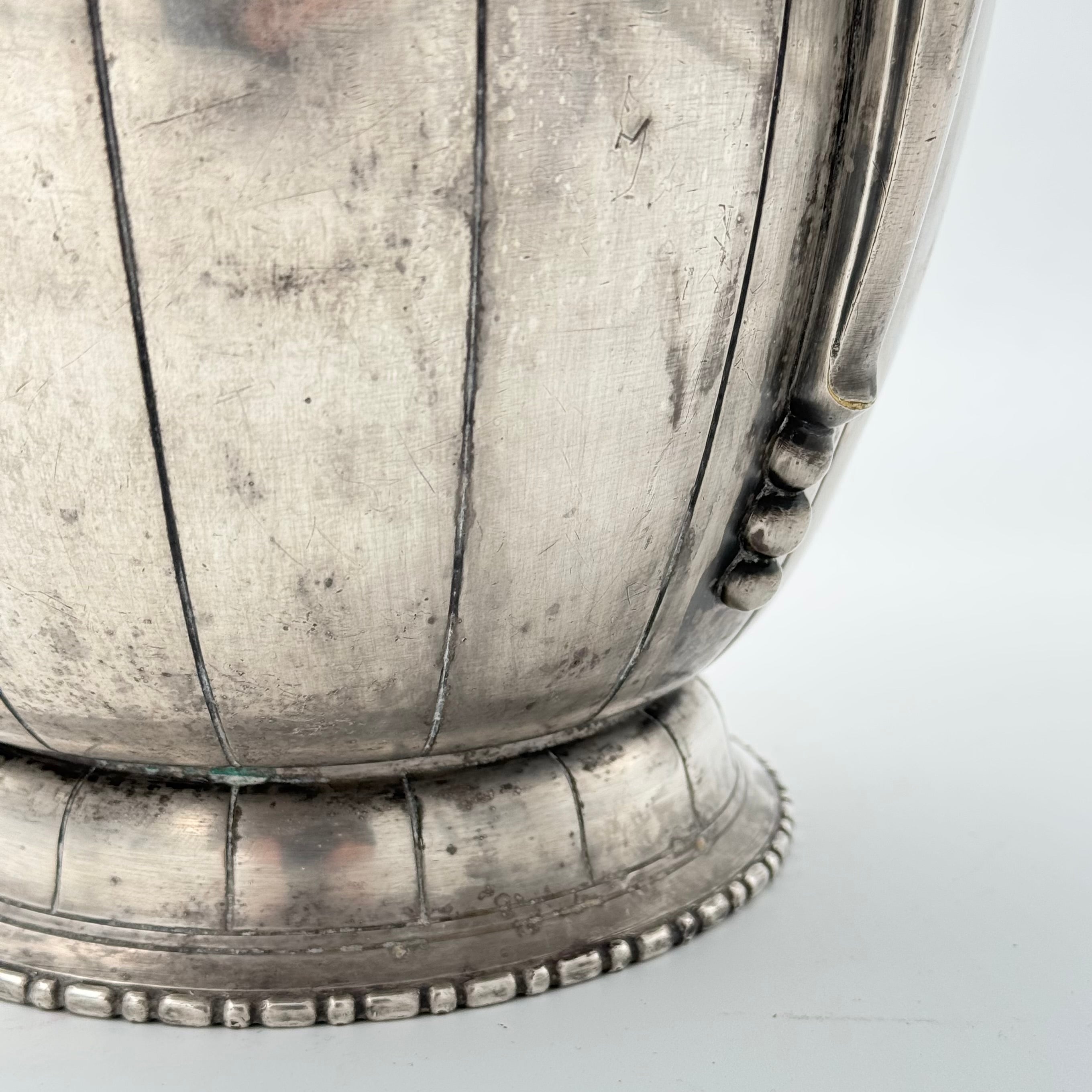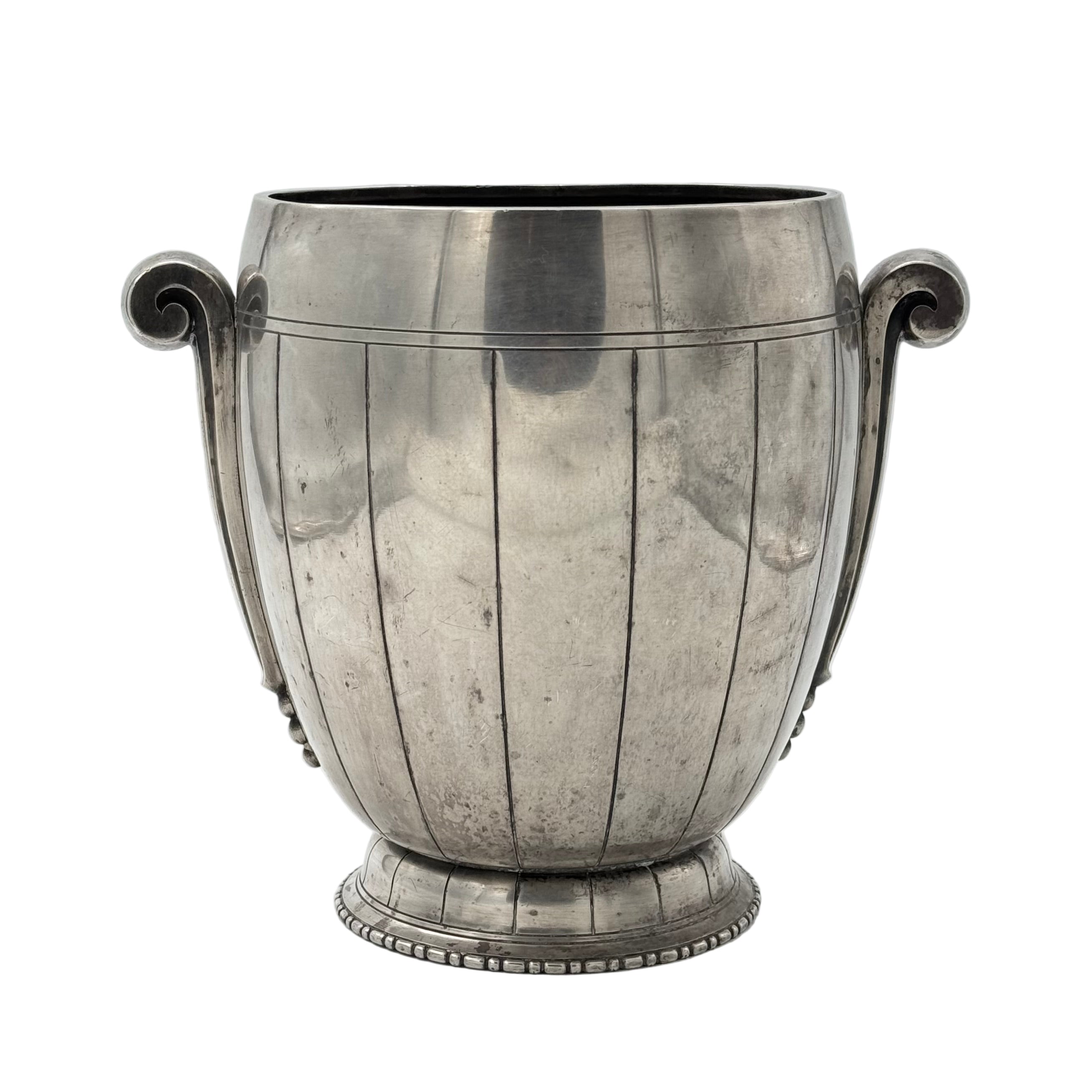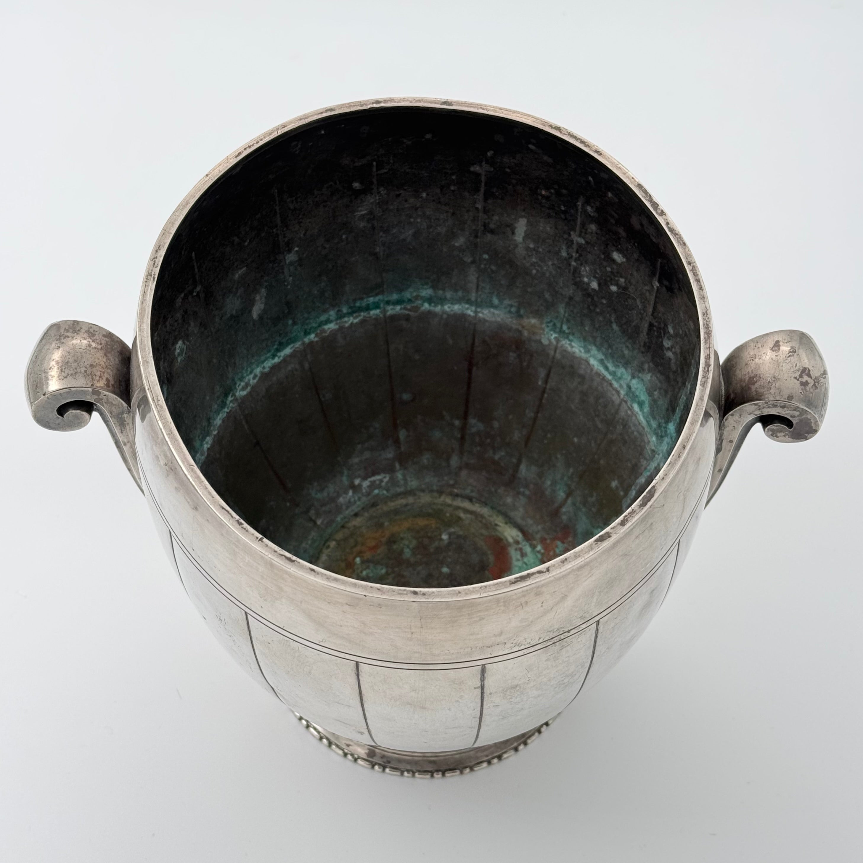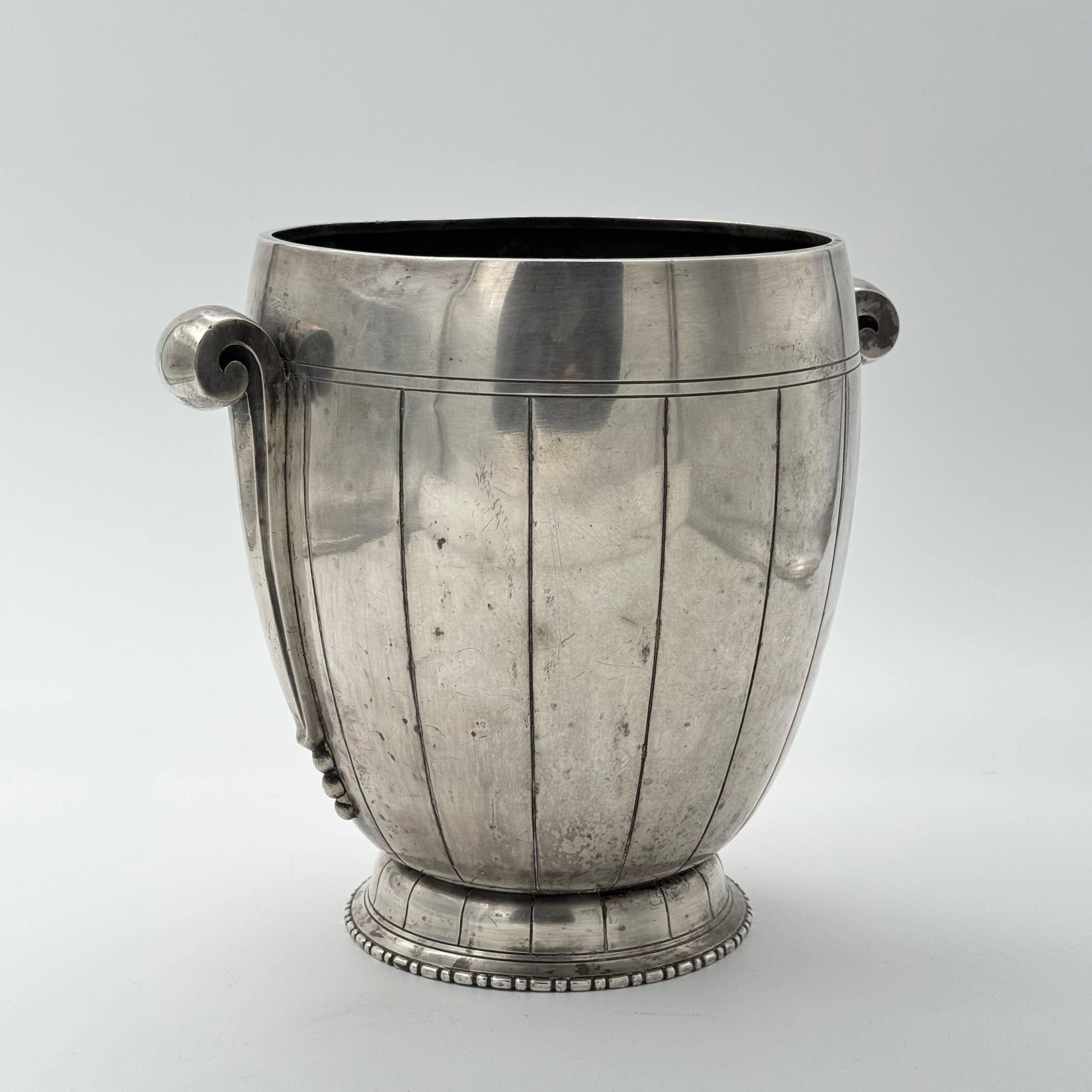 Stylish champagne bucket from the 1930s Art Deco era, made for Bouillet Bourdelle (BB). The bucket is characterized by its period design with harmonious proportions and elegant geometric design. A solid example of French craftsmanship from the period, where function meets aesthetic precision. Perfect as a serving detail or as a collector's item with historical and decorative significance.
