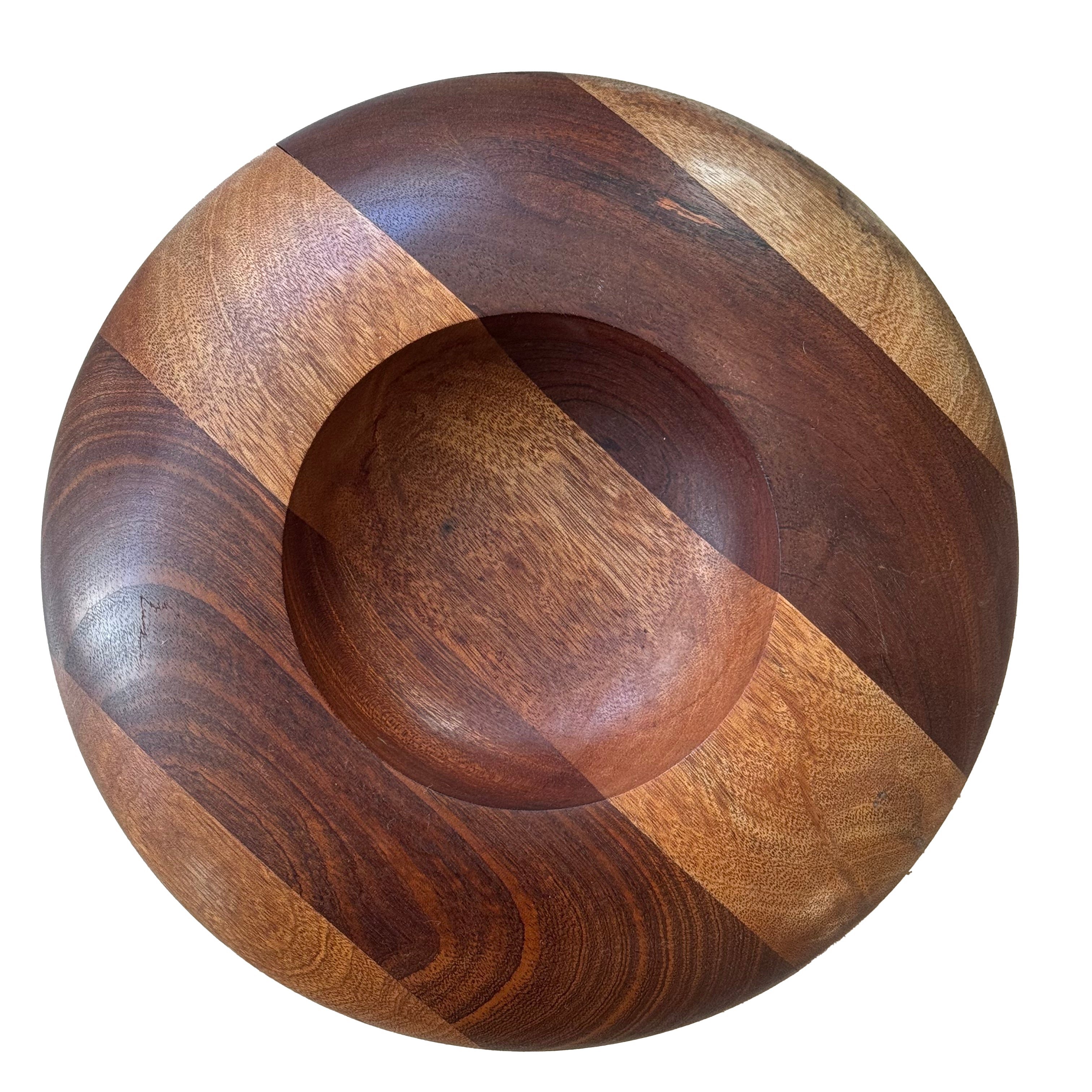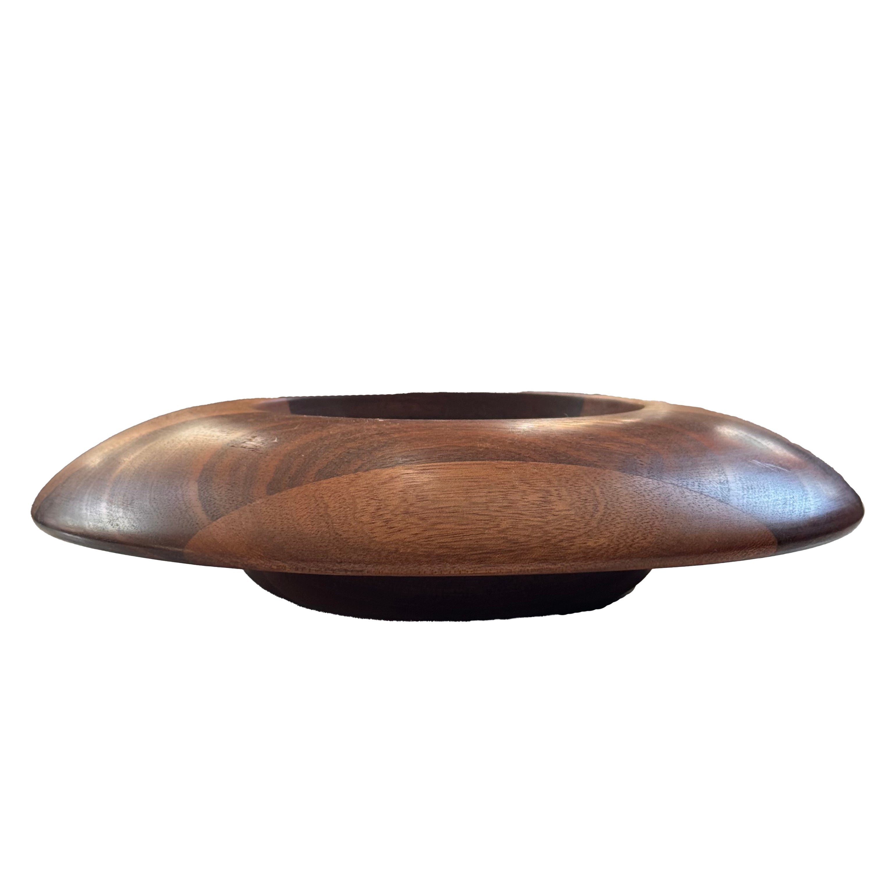 Decorative handmade bowl in mahogany with striped effect.