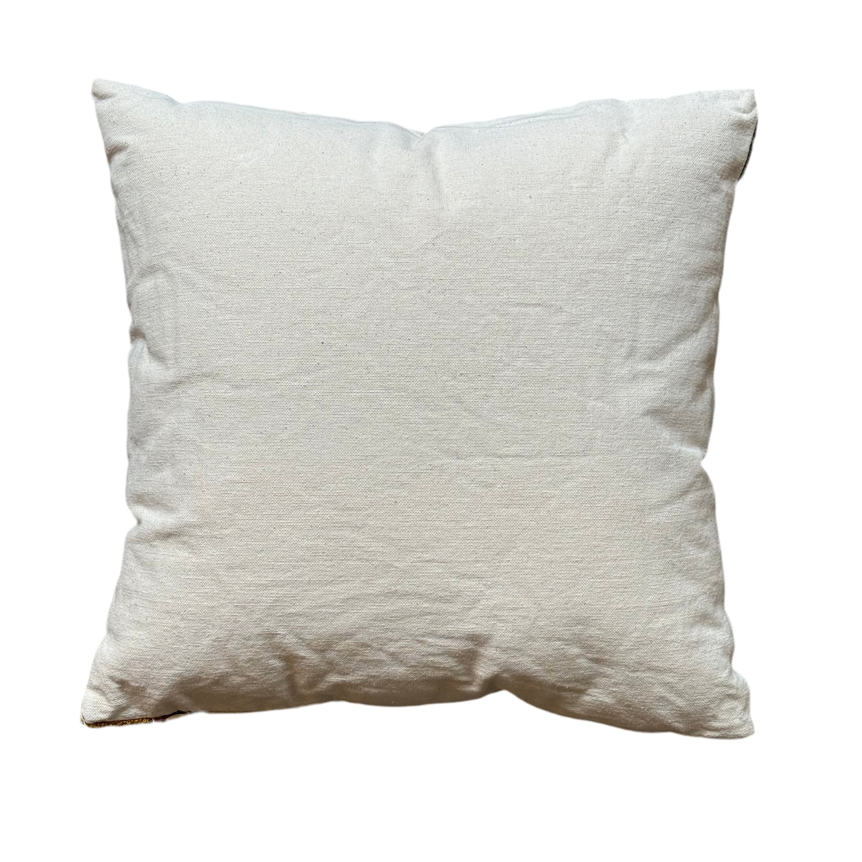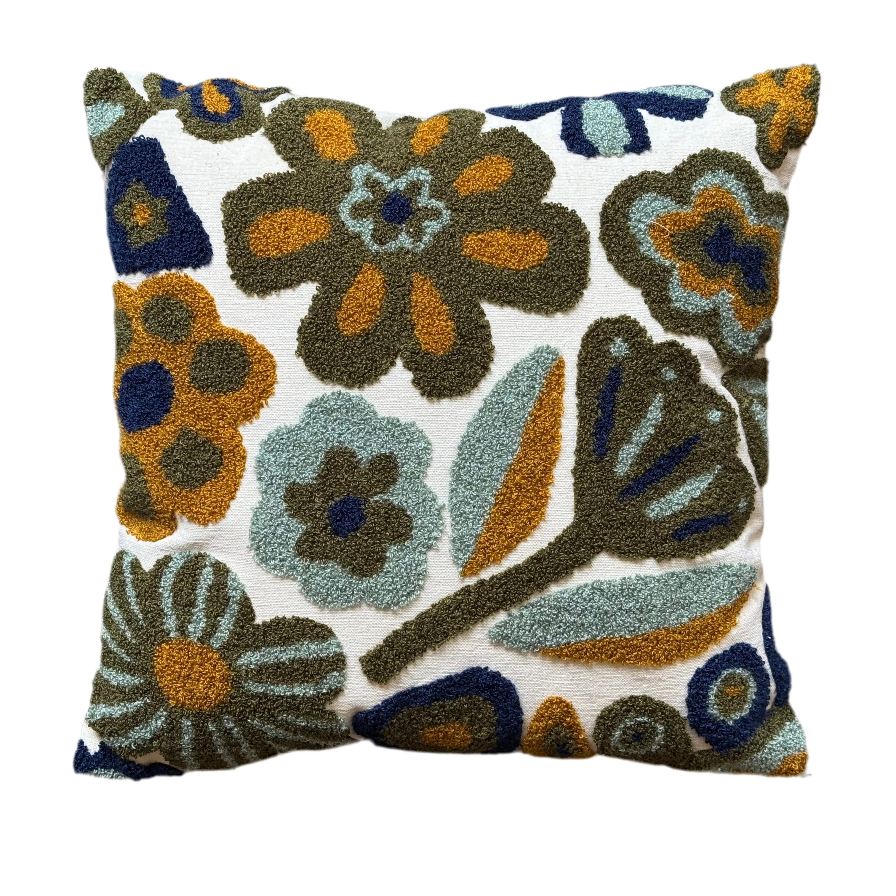 Cushion with decorative floral motif. Back in canvas fabric.