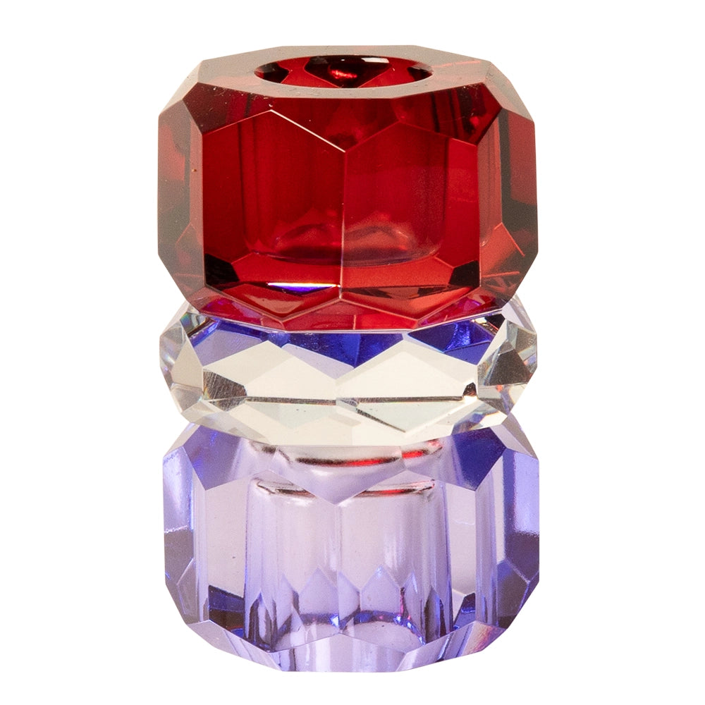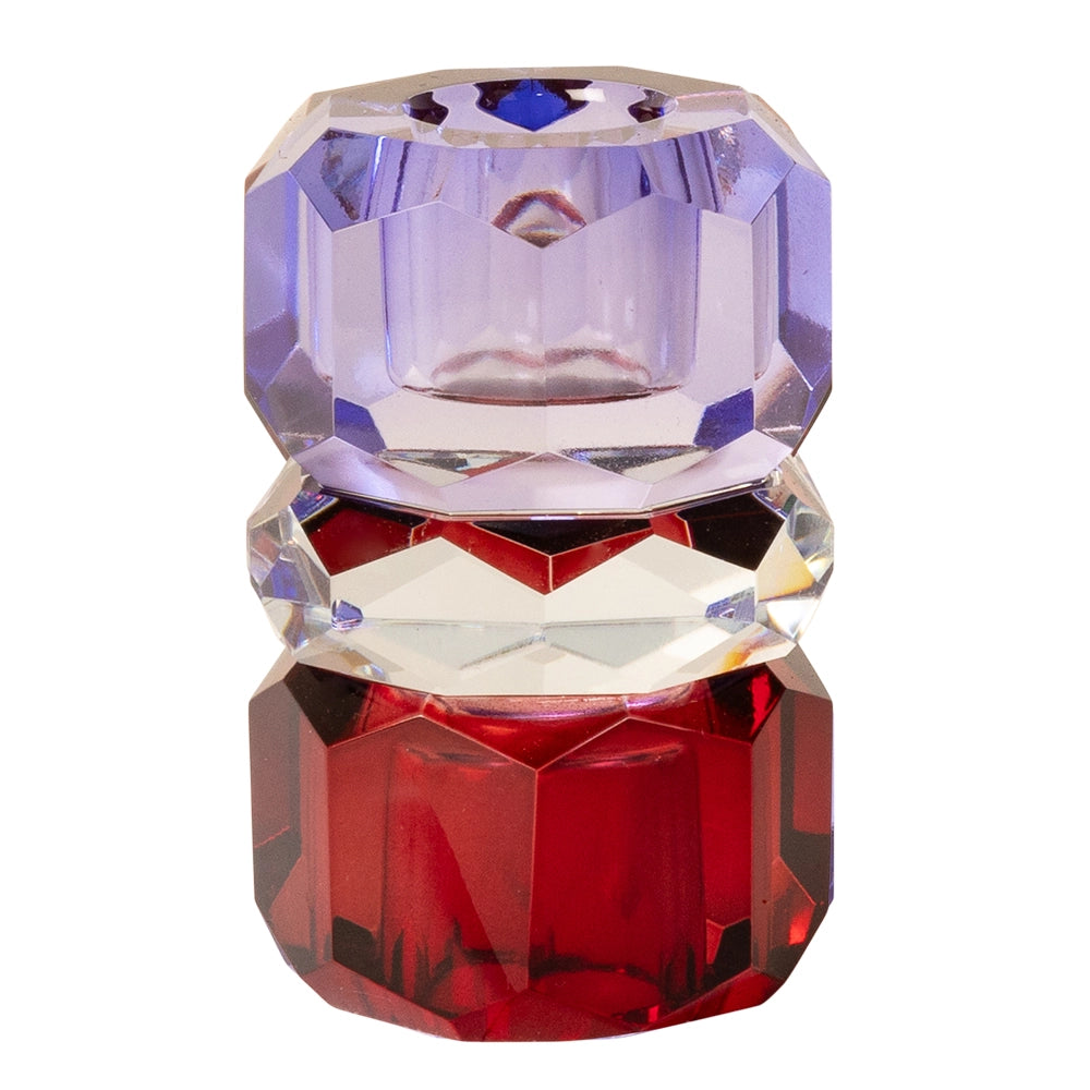 Crystal Candle Holder, Bordeaux/Clear/Blue 7.5x4.5cm