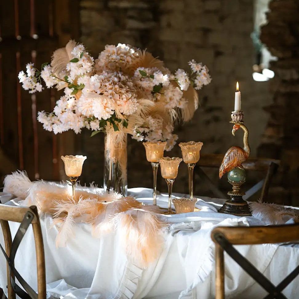 Skapa en blomsteräng i din dukning eller låt den bli en vacker accent i inredningen. Den blomformade ljuslyktan tillför färg, höjd och ett mjukt sken som ger en romantisk och levande känsla – lika fin till festdukningen som på ett sidobord eller i fönstret.