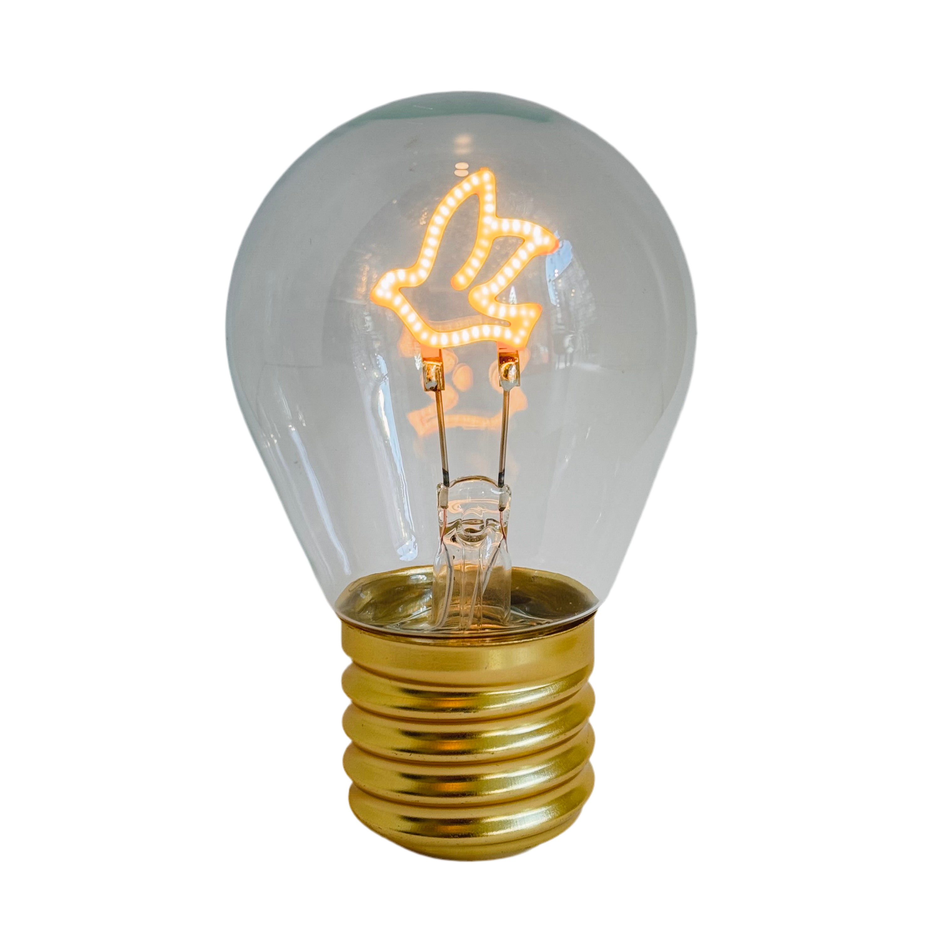 Portable lamp in the shape of a light bulb with a glowing dove in the middle. Perfect mood lighting to place wherever you want.