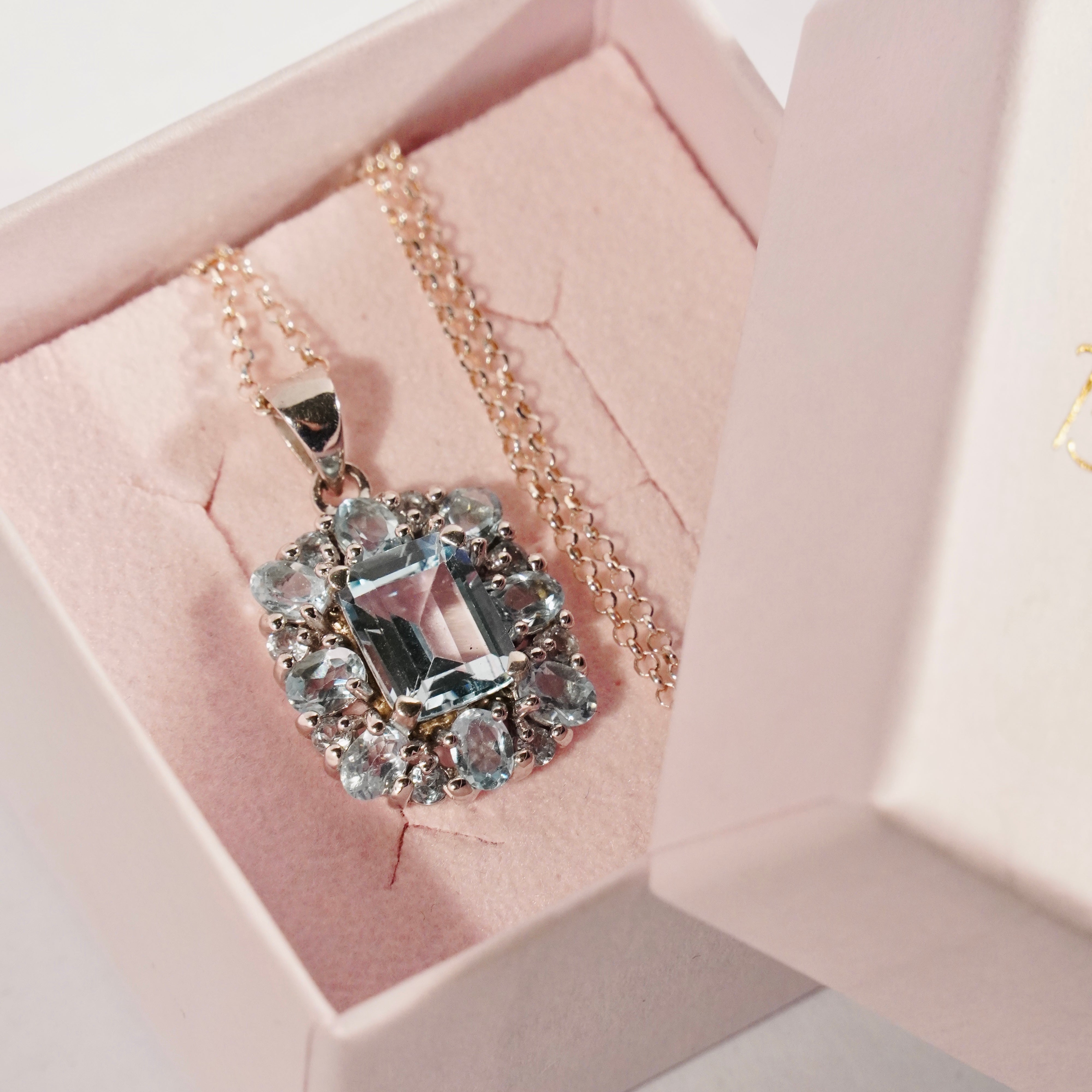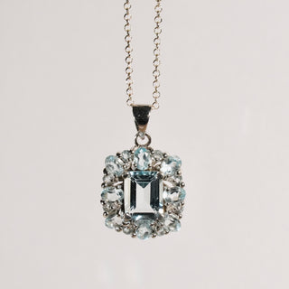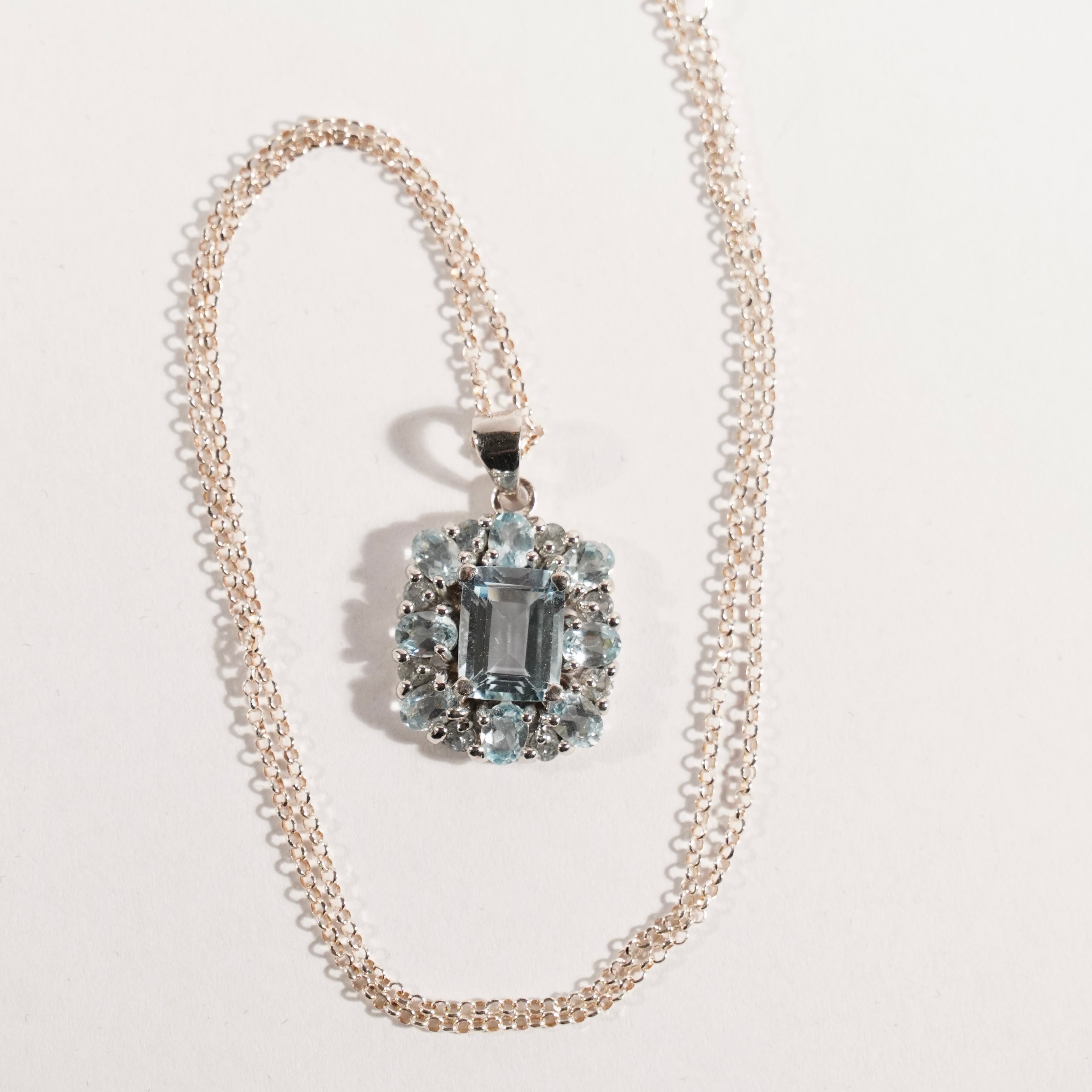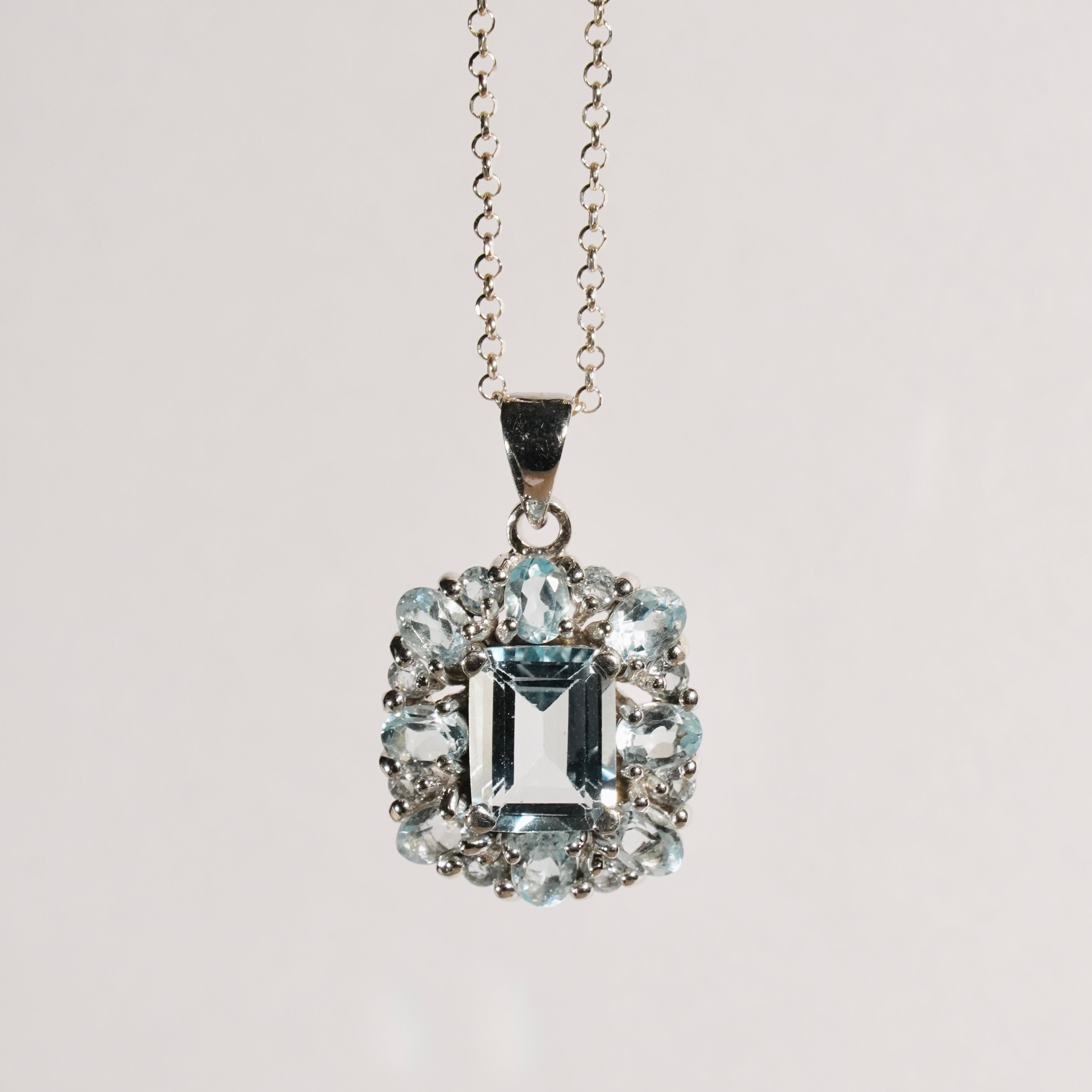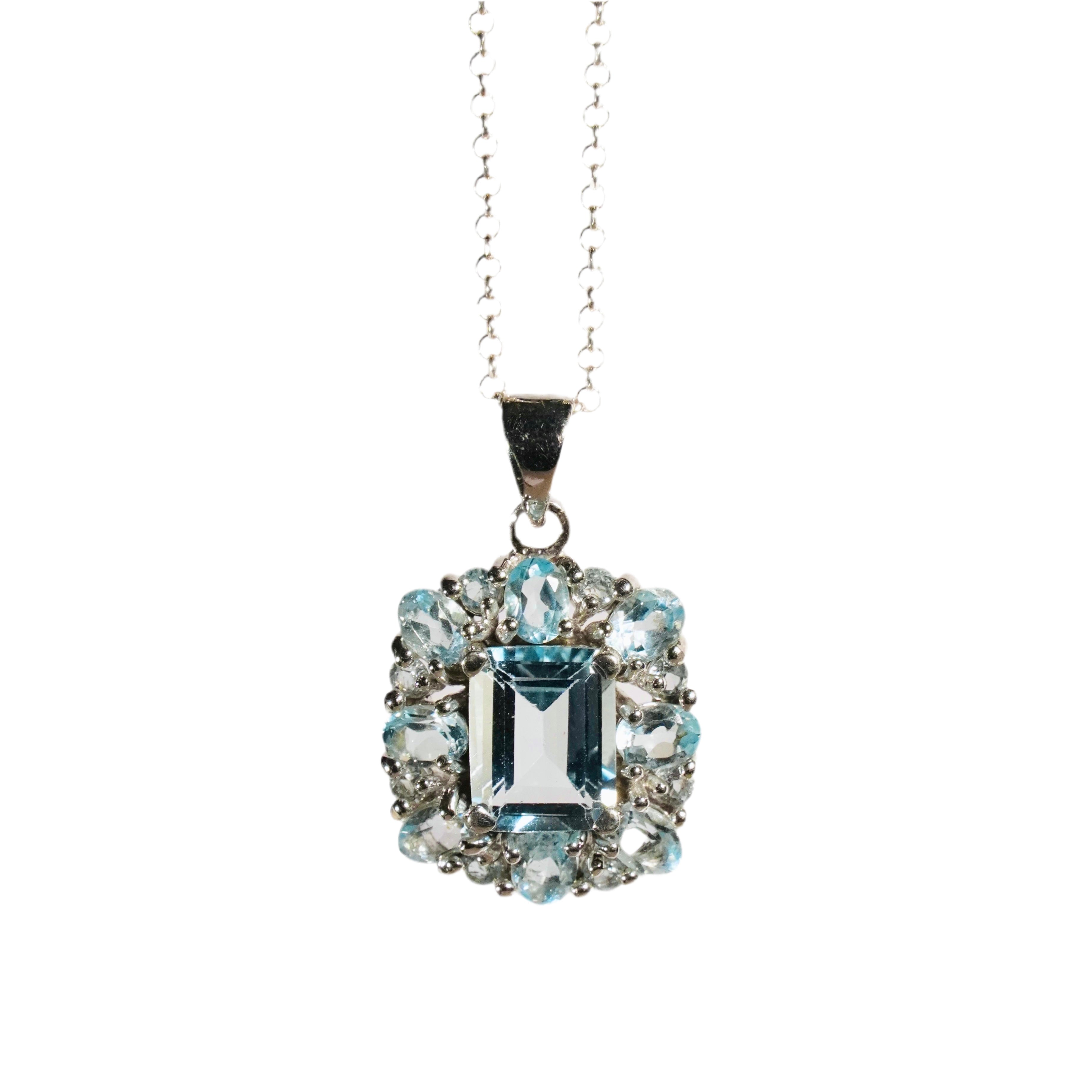 Silver necklace with a pendant in 925 silver and blue topazes.