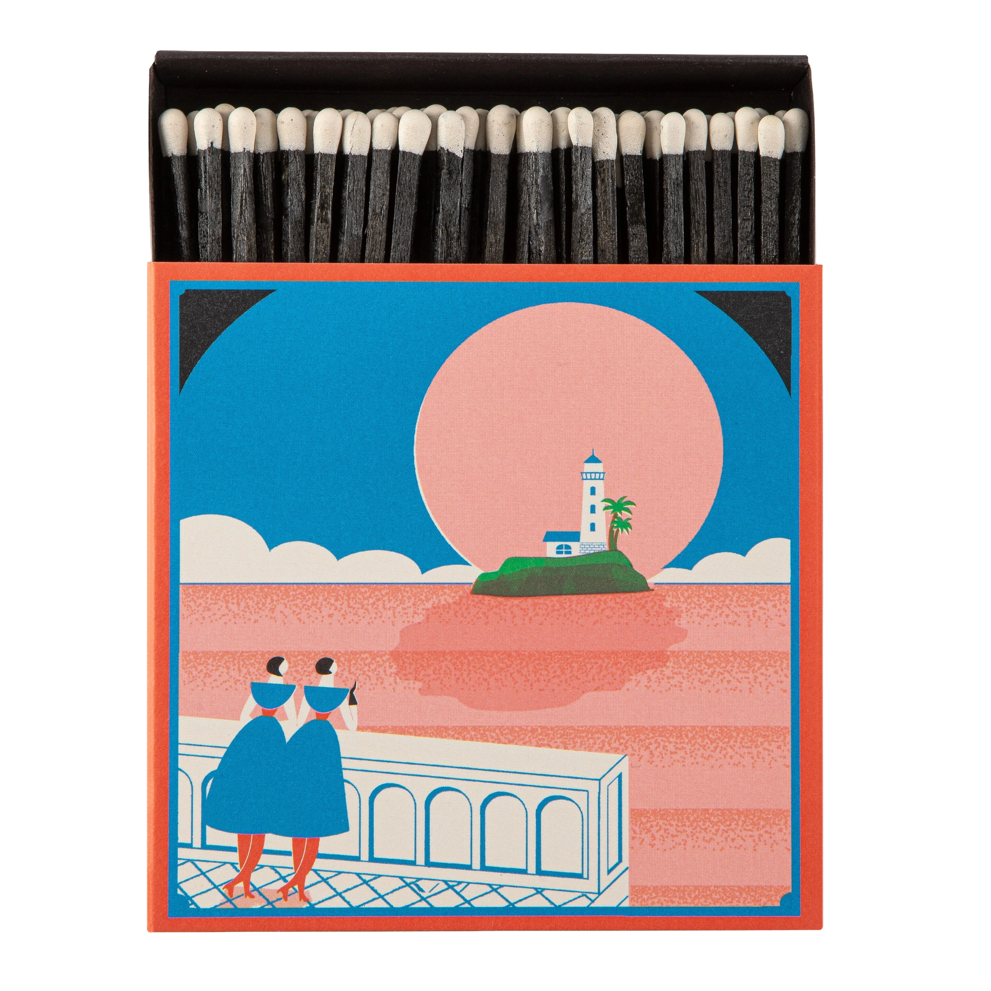 Lyxtändstickor från brittiska Archivist – tändsticksaskar i vacker, humoristisk och fyndig design. Ett perfekt tillbehör hemma vid ljustaken, som en perfekt gåbort-present, eller tillsammans med en vacker ljusstake till födelsedagsbarnet. Tändstickorna är långa och stadiga av fin kvalitet, så man hinner tända många ljus utan att bränna sig.