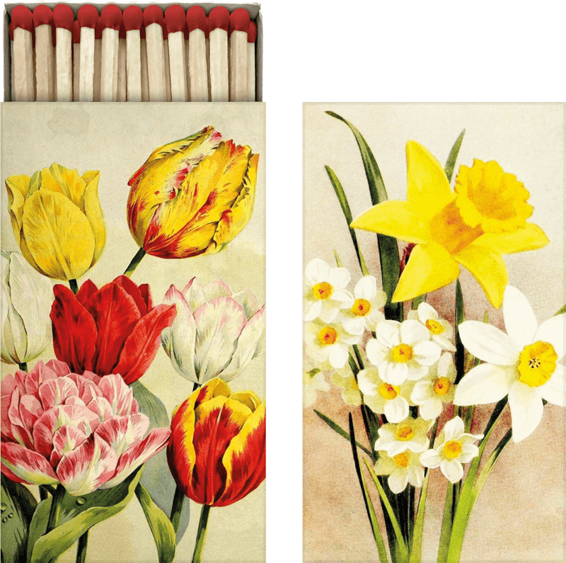 An elegant and decorative matchbox filled with long matches. With its beautiful motifs, the box is not only practical but also a small interior detail to leave out in front.