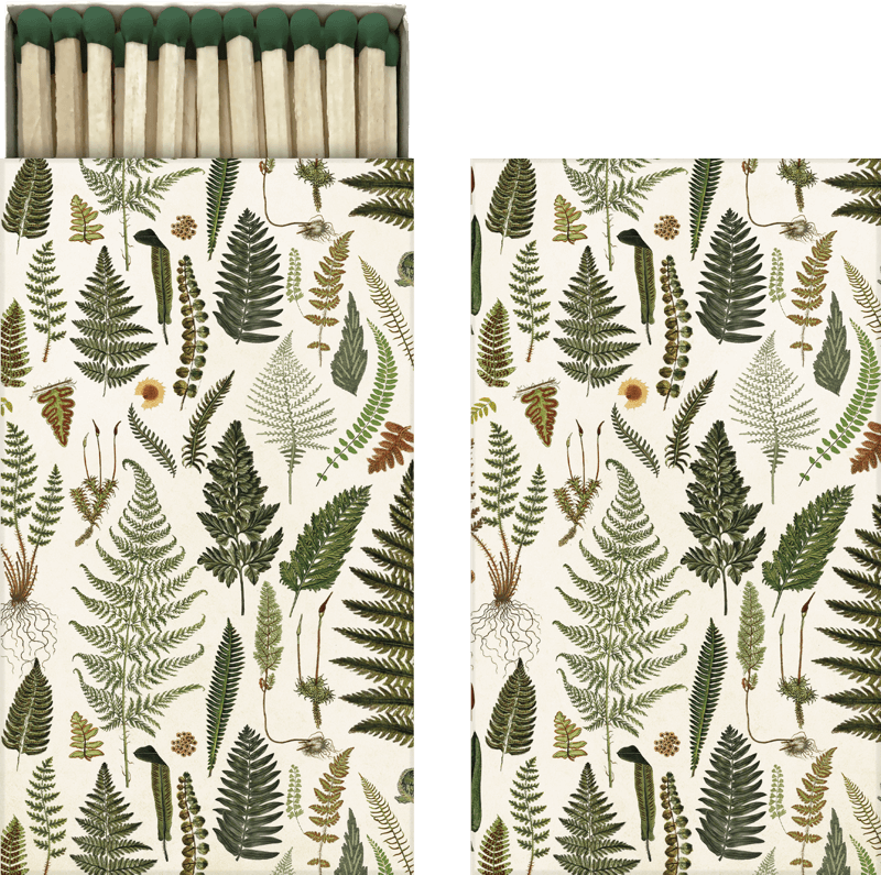 An elegant and decorative matchbox filled with long matches. With its beautiful motifs, the box is not only practical but also a small interior detail to leave out in front.