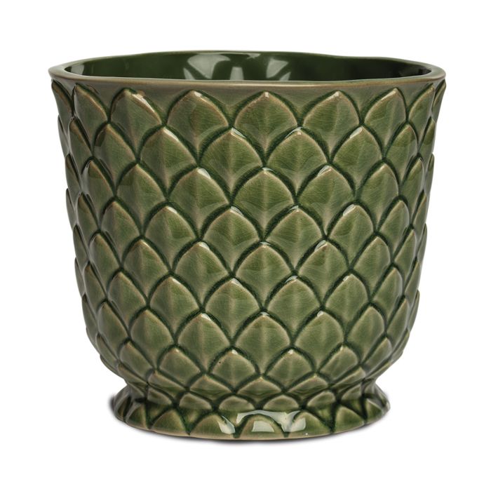 Elegant keramikkruka i en vackert grön glaserad finish. Den mjuka, klassiska formen ger en tidlös känsla och det kottliknande mönstret för tankarna till Siciliansk keramik.