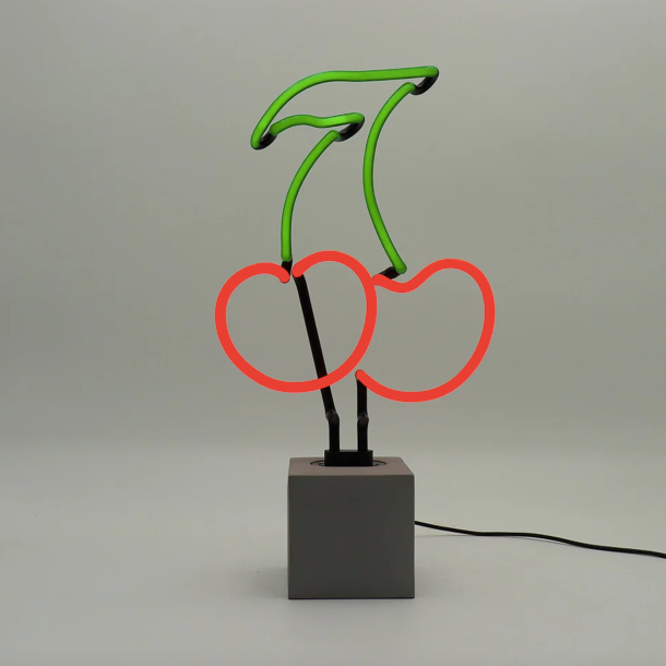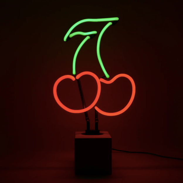 Ge ditt rum en unik och livfull atmosfär med denna 'Körsbär'-neonlampa på betongfot! Dess mjuka, färgstarka sken skapar en inbjudande känsla och blir en iögonfallande detalj i vilket utrymme som helst – perfekt för hemmet, kontoret eller som en personlig touch i din inredning.