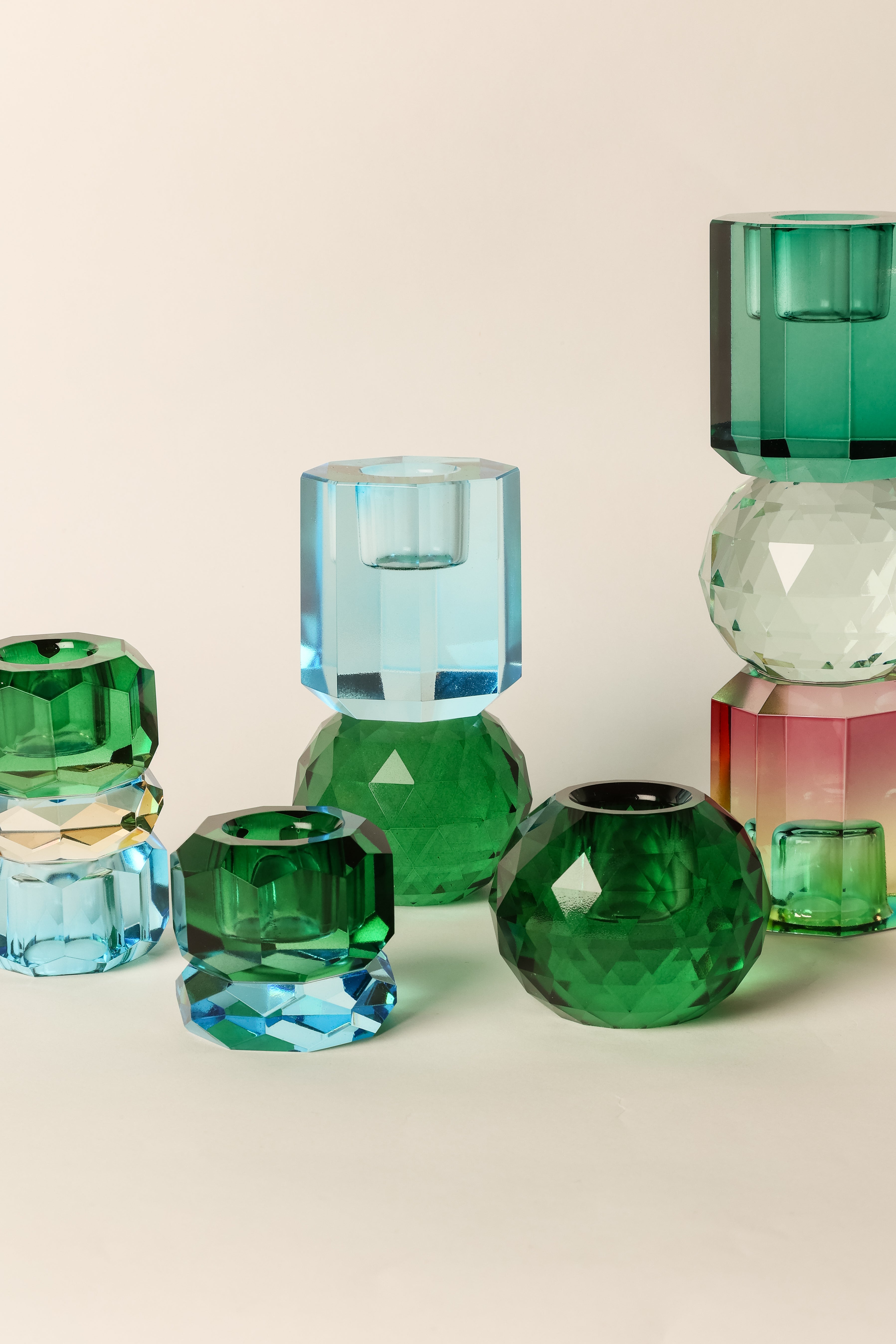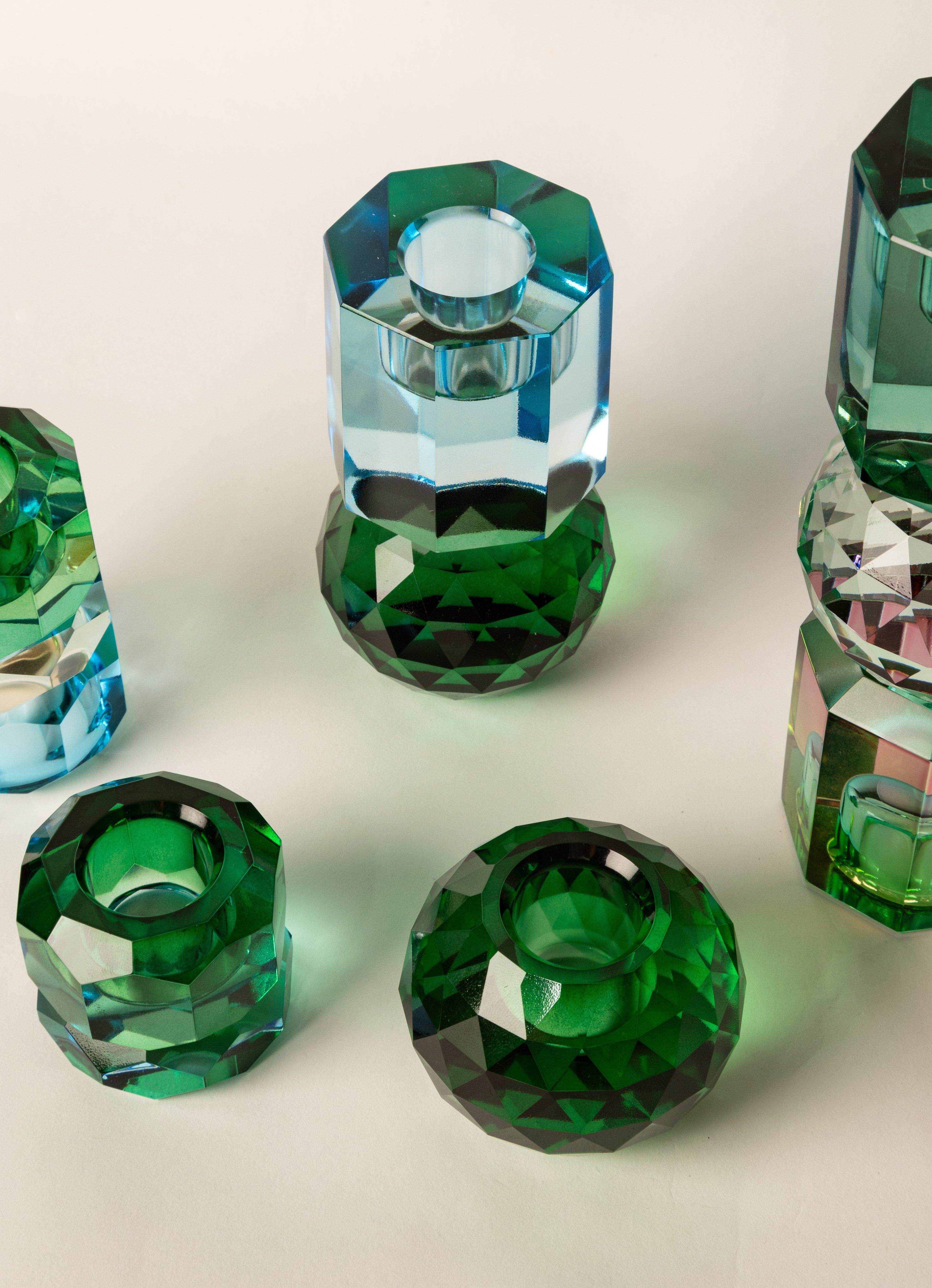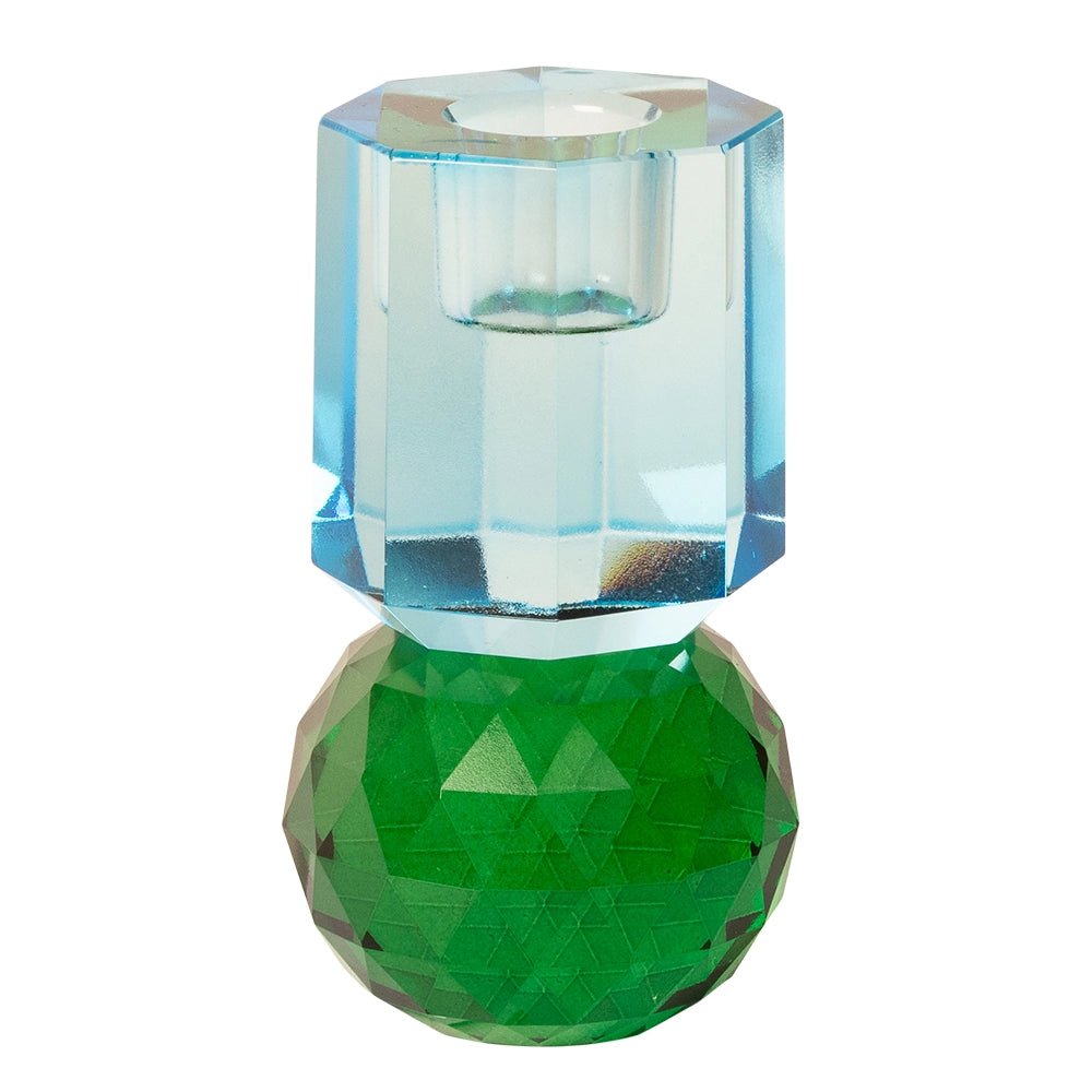 Kristall Ljusstake, Mörkgrön/Kobolt 10,6x6cm