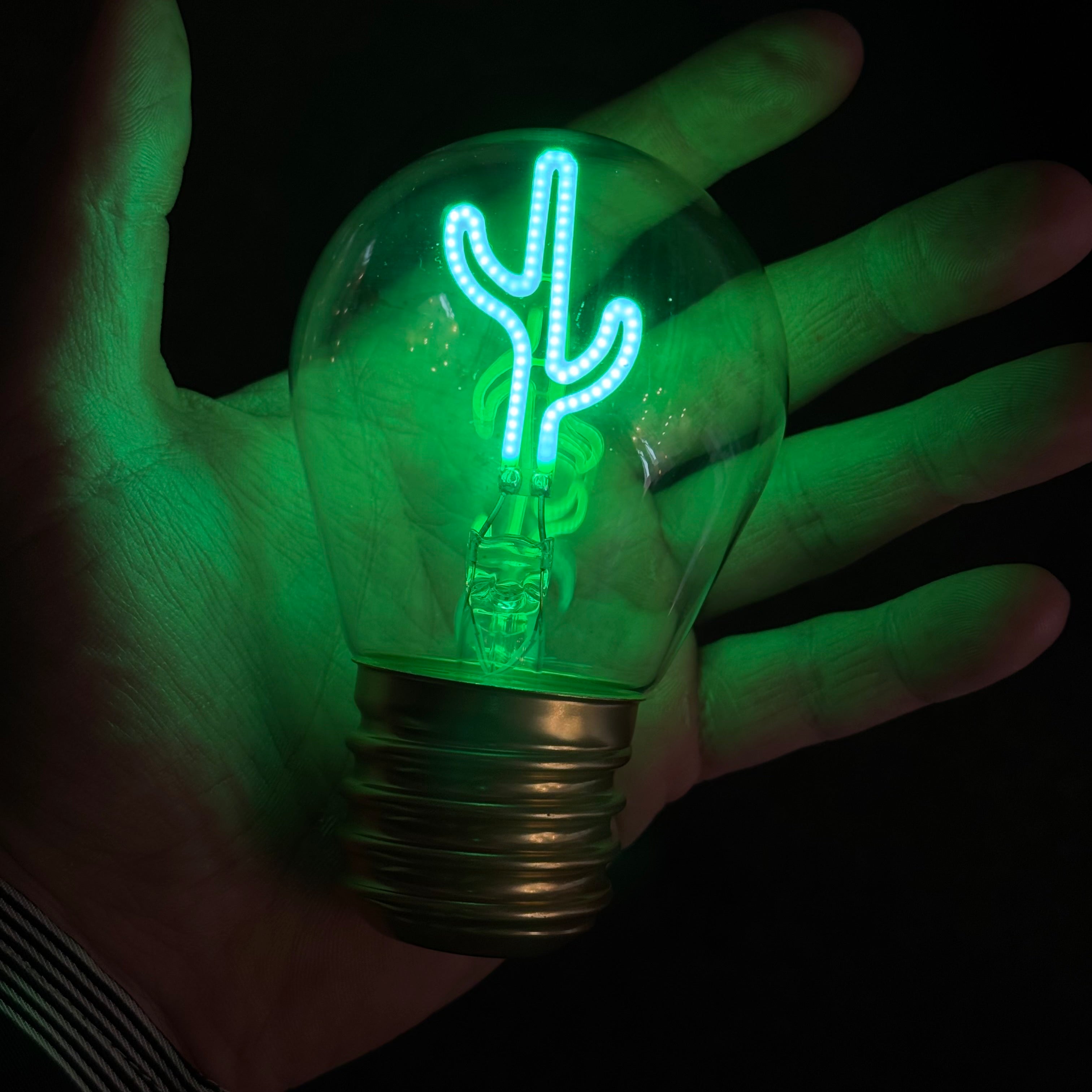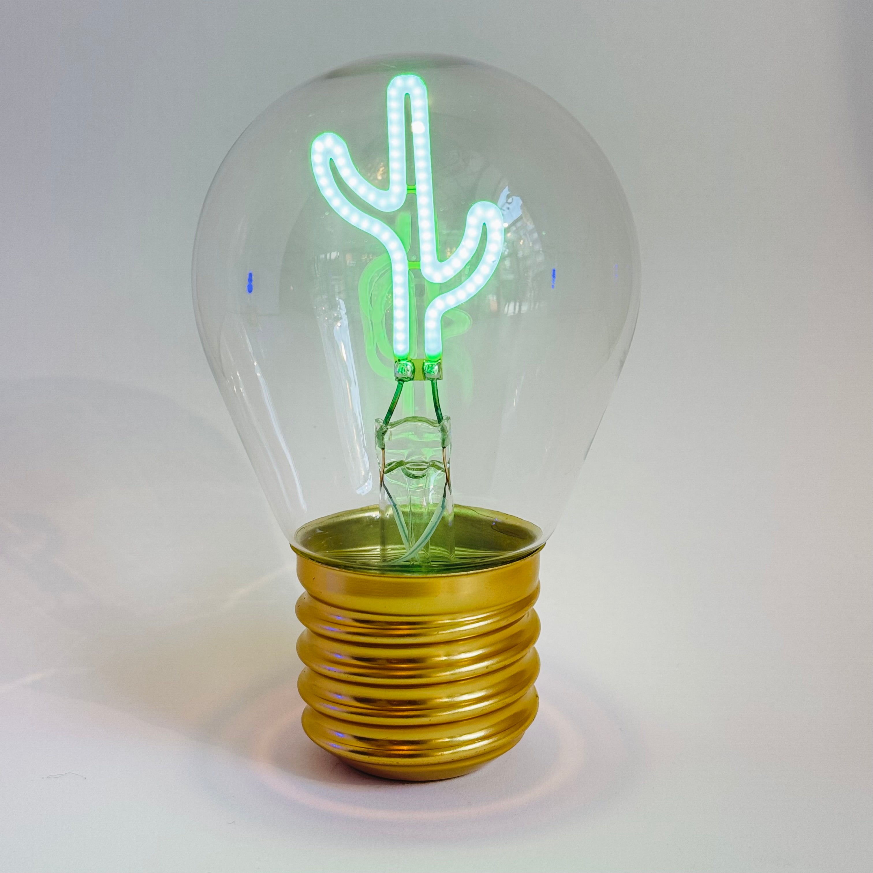 Portabel lampa i form av en glödlampa med en lysande kaktus i mitten. Perfekt stämningsbelysning att placera vart man vill.