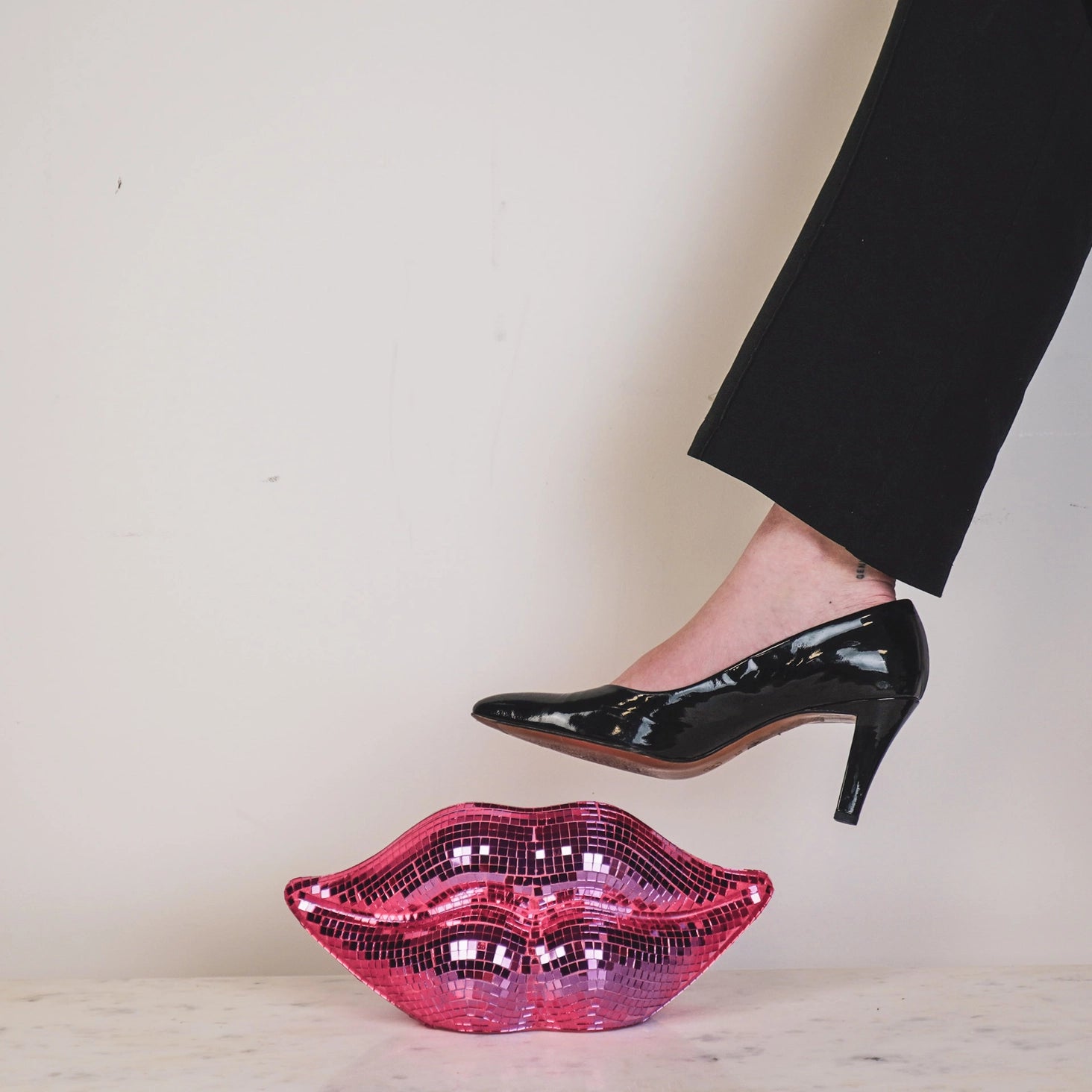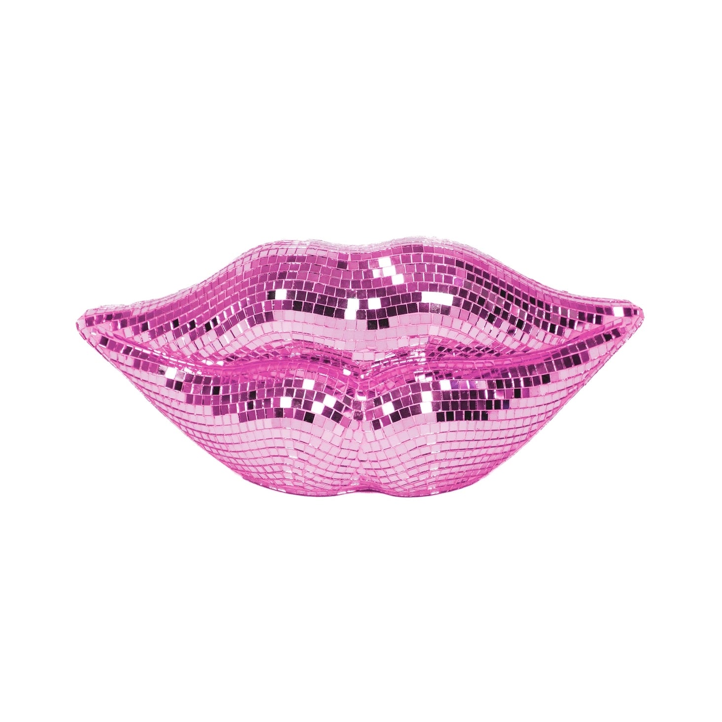Ge ditt hem en disco touch med denna iögonfallande skulptur föreställande ett par läppar täckta i glittrande spegelmosaik.