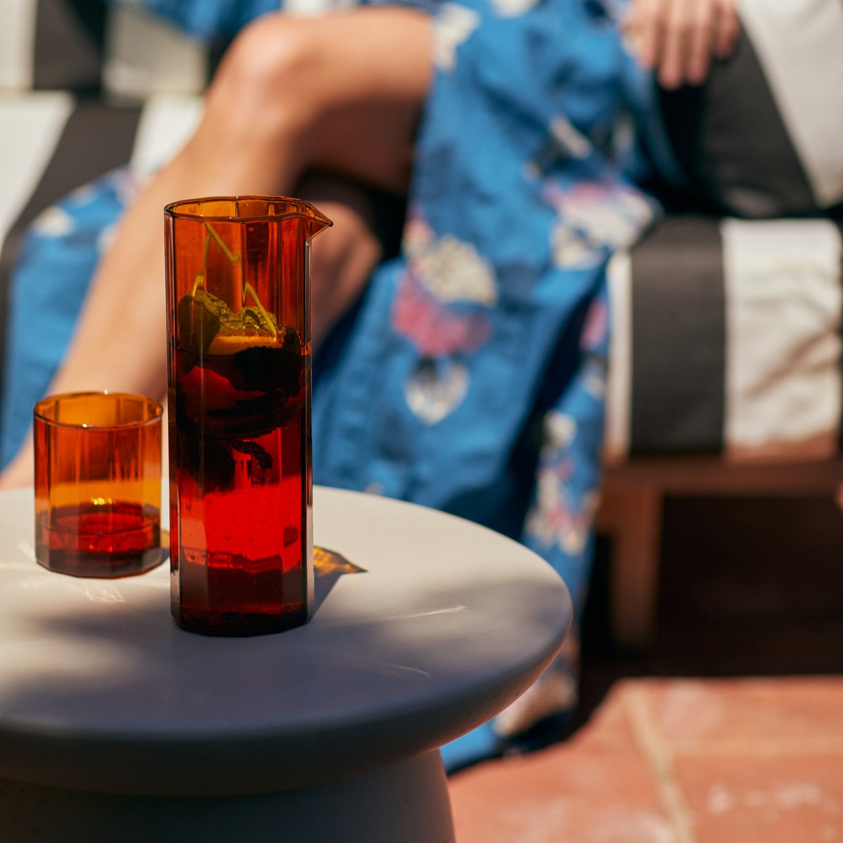 Med sin eleganta, förlängda design är denna Sunlit-karaf perfekt för att servera vatten, juice eller dina favoritdrycker.