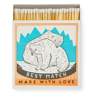 Lyxtändstickor från brittiska Archivist – tändsticksaskar i vacker, humoristisk och fyndig design. Ett perfekt tillbehör hemma vid ljustaken, som en perfekt gåbort-present, eller tillsammans med en vacker ljusstake till födelsedagsbarnet. Tändstickorna är långa och stadiga av fin kvalitet, så man hinner tända många ljus utan att bränna sig.